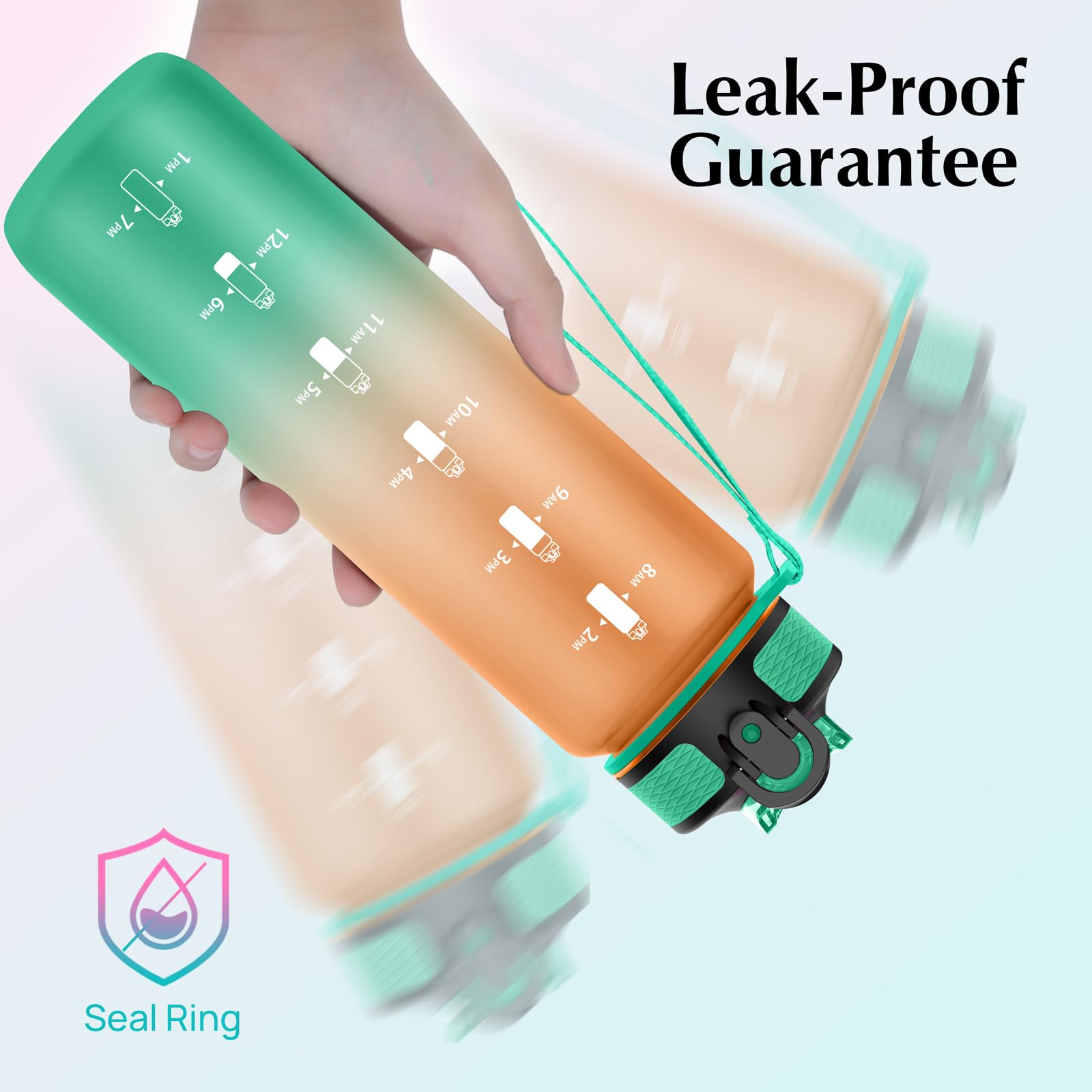 EYQ 32 oz Water Bottle with Time Marker, Carry Strap, Leak-Proof Tritan BPA-Free, Ensure You Drink Enough Water for Fitness, Gym, Camping, Outdoor Sports (Orange/Green Gradient)
