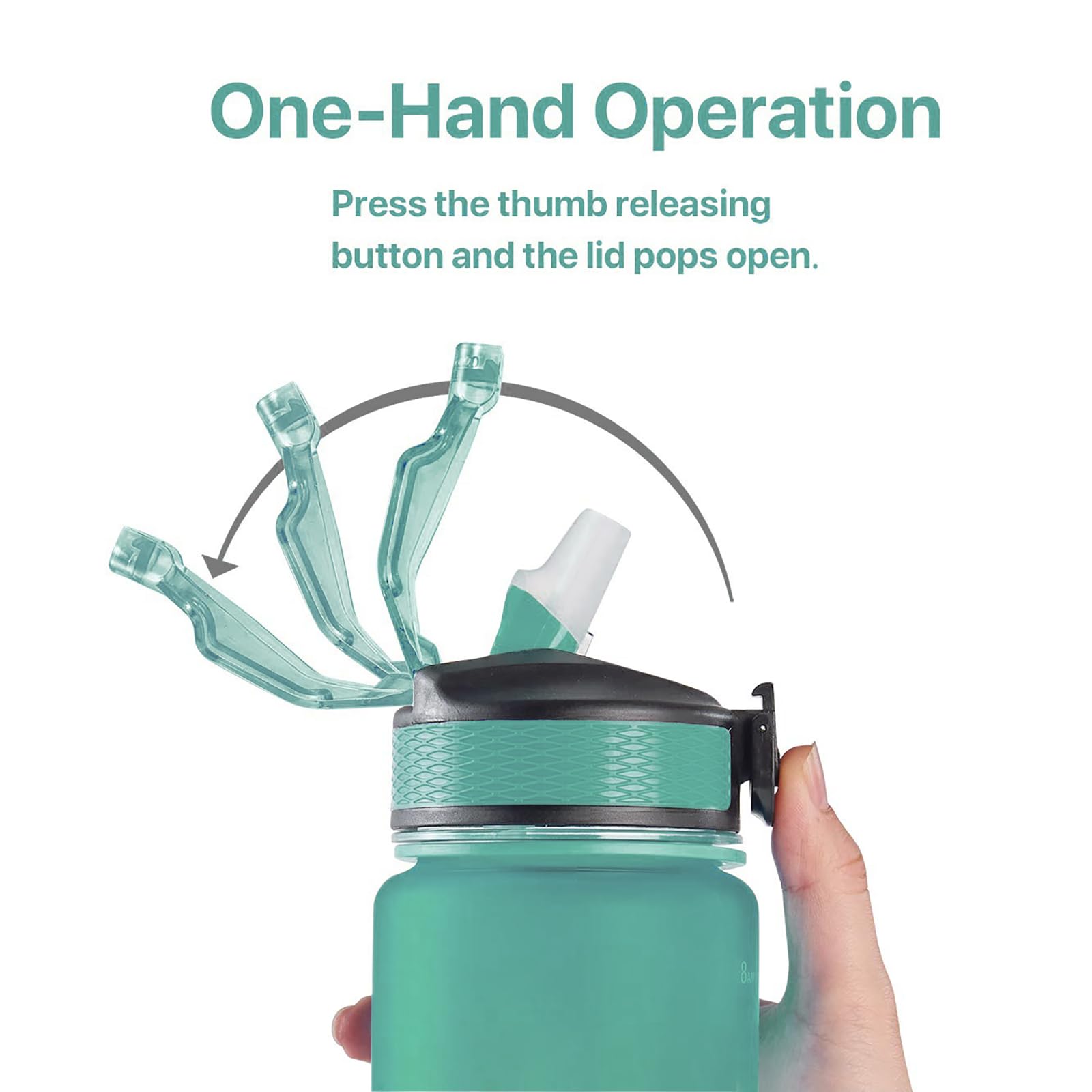 - Distinct and Portable: Leak-proof locking lid with one-handed push-button, prevent dust and leakage. The water bottle is equipped with a carry strap, allowing you to easily carry it anywhere. Perfect choice for fitness, gym, running, hiking, cycling, camping, and any ohter indoor outdoor sports.