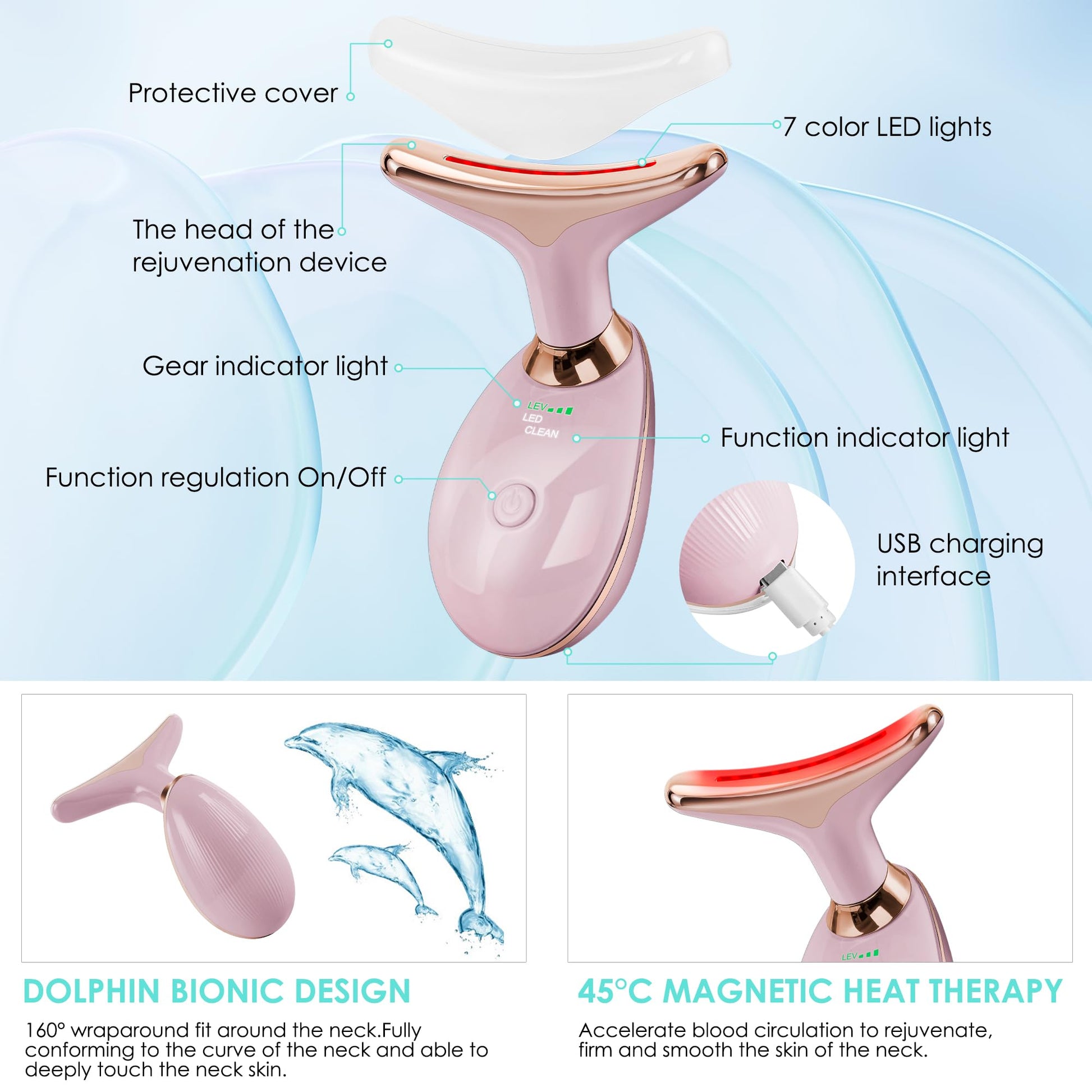 Facial Massager Red-Light-Therapy-for-Face and Neck, Face π² culpting Wand with 7 Color - Birthday, Christmas, Mothers Day, Valentines Day Gifts for Her Women Mom Best Friend Wife Teacher (Rose Gold)