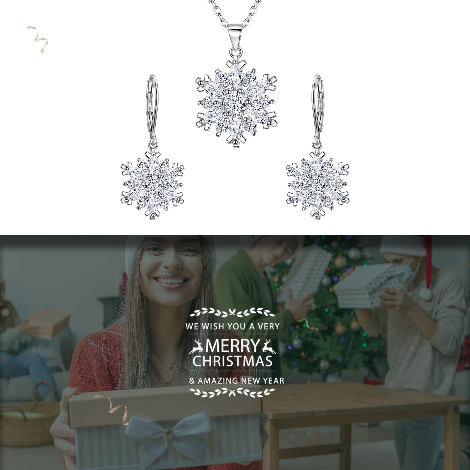 FANZE Fashion Cubic Zircon Snoweflake Jewelry Set for Women Snow Dangle Earring Hypoalllergenic Trendy Gift for New Years Chrismas Thanksgiving Clear Sliver-Tone