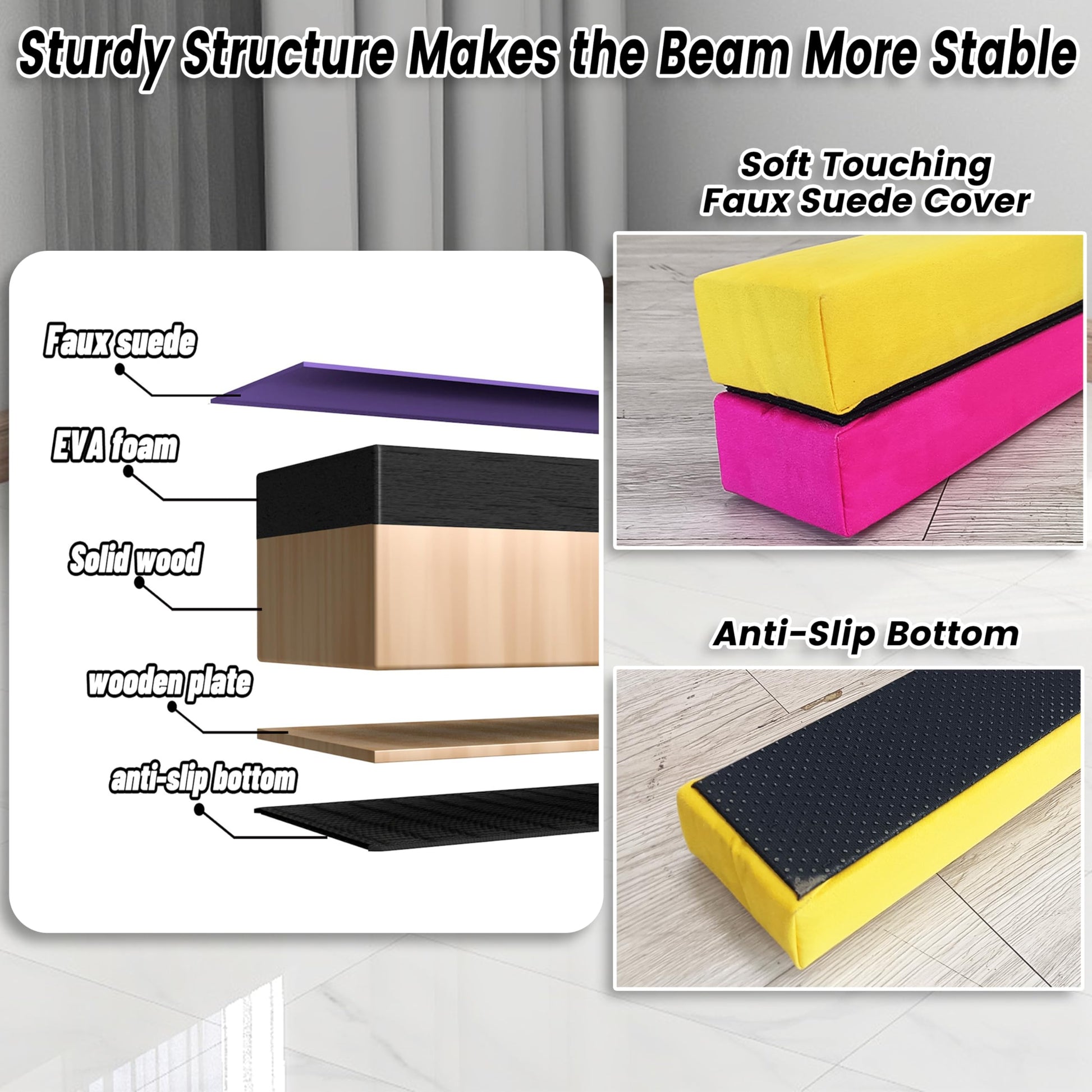 - Durable and Versatile: The beam consists of five layers. Top layer is faux suede, second is high-density EVA foam, third is solid wood,fourth layer is a wooden plate,bottom layer is anti-slip material. Which makes the beam more stable and useful