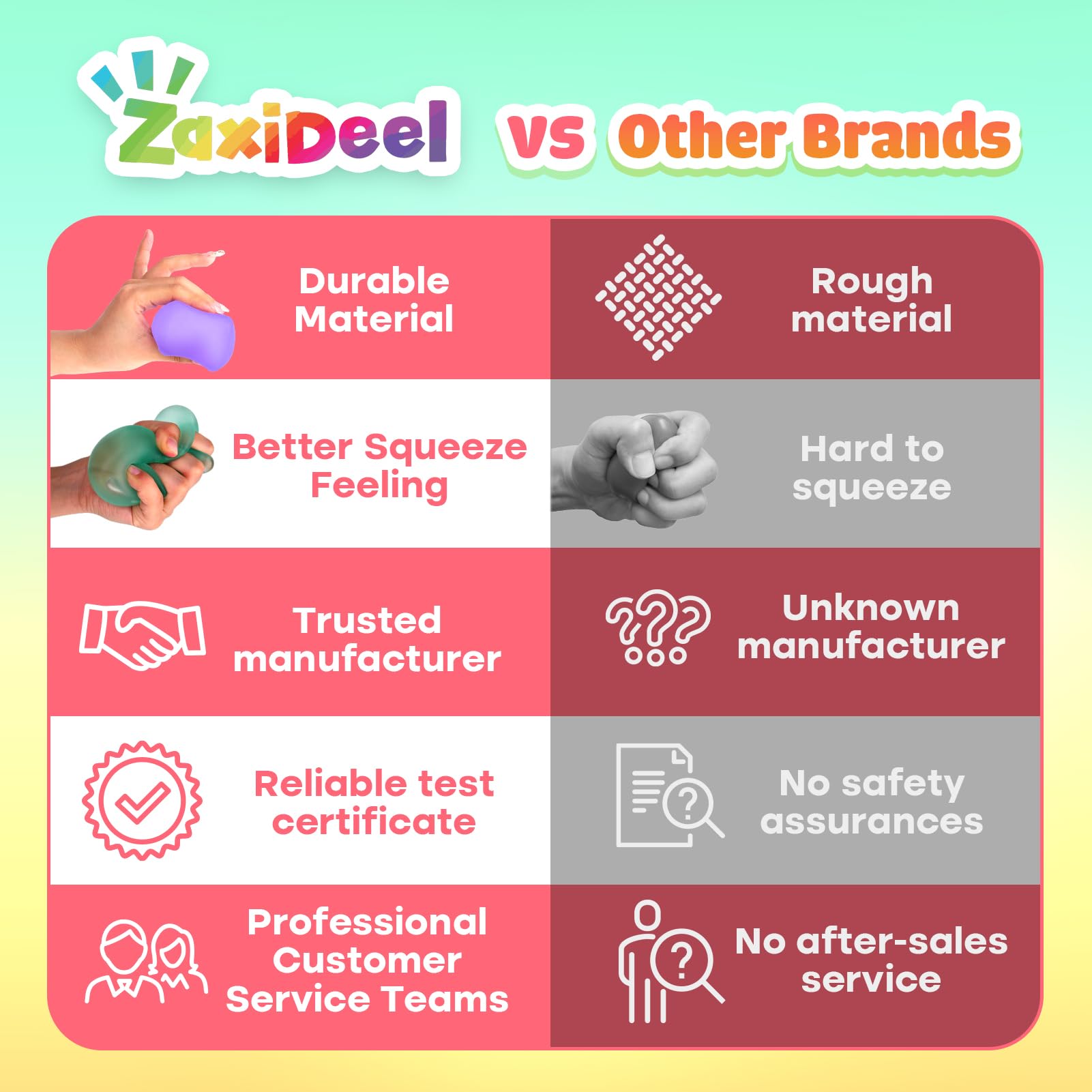- 【TRUSTED BRAND】ZaxiDeel is a professional brand of squeeze toys, trusted by countless parents, teachers, and professionals, popular for classroom rewards, office stress toy, holiday gifts and a variety of occasions where tension release is needed. If you have any questions, Our dedicated team is always ready to provide you with satisfactory support within 24 hours