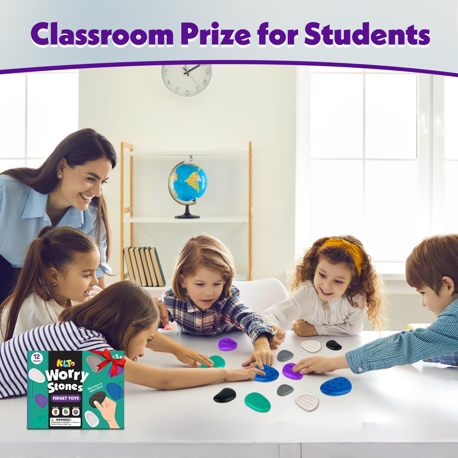Fidget Toys Adults Sensory Stones: 12 Pack Textured Worry Stone for Autism Kids Calming Down - Fidget Stress Toys for Anxiety Relief - Students Prizes Fidget Toys