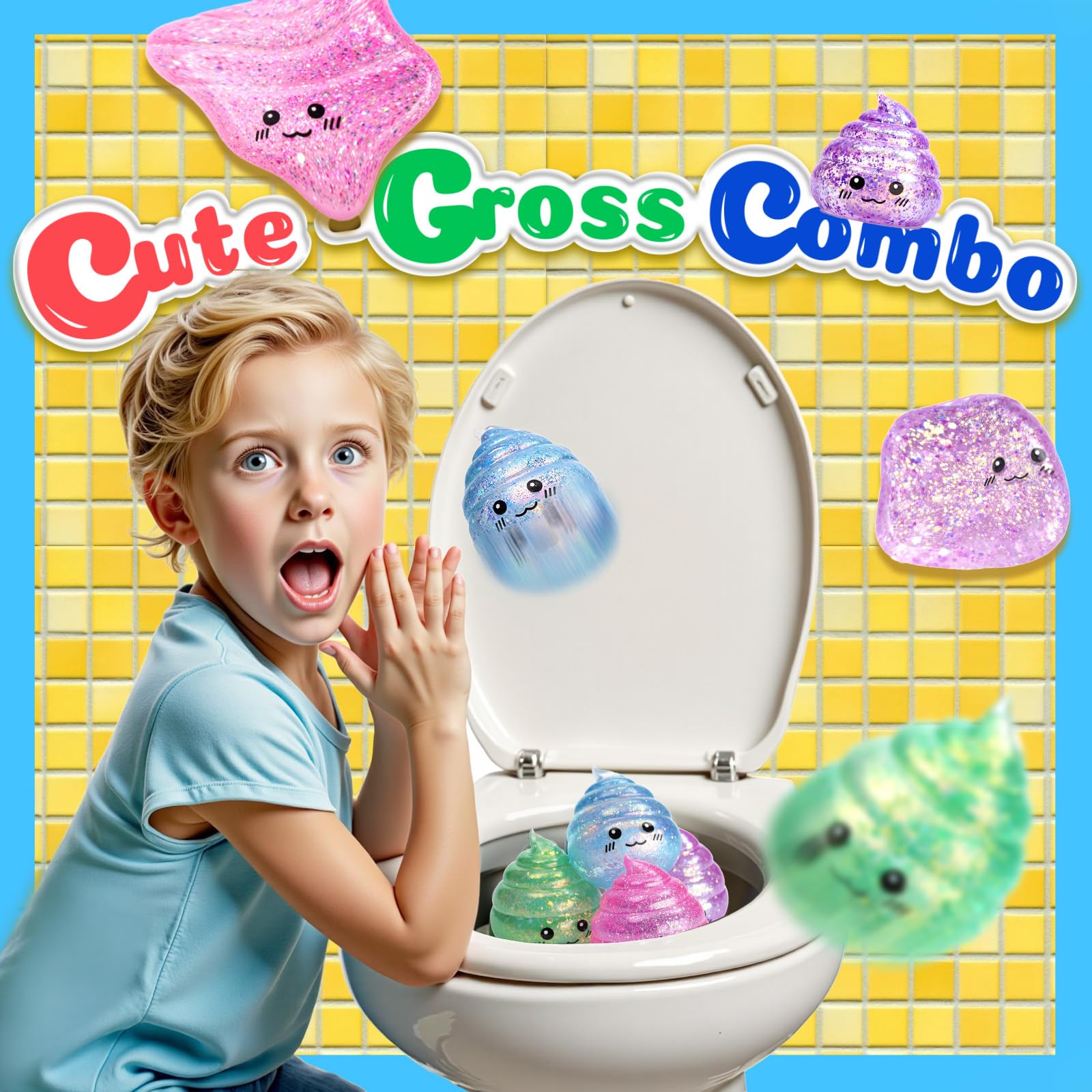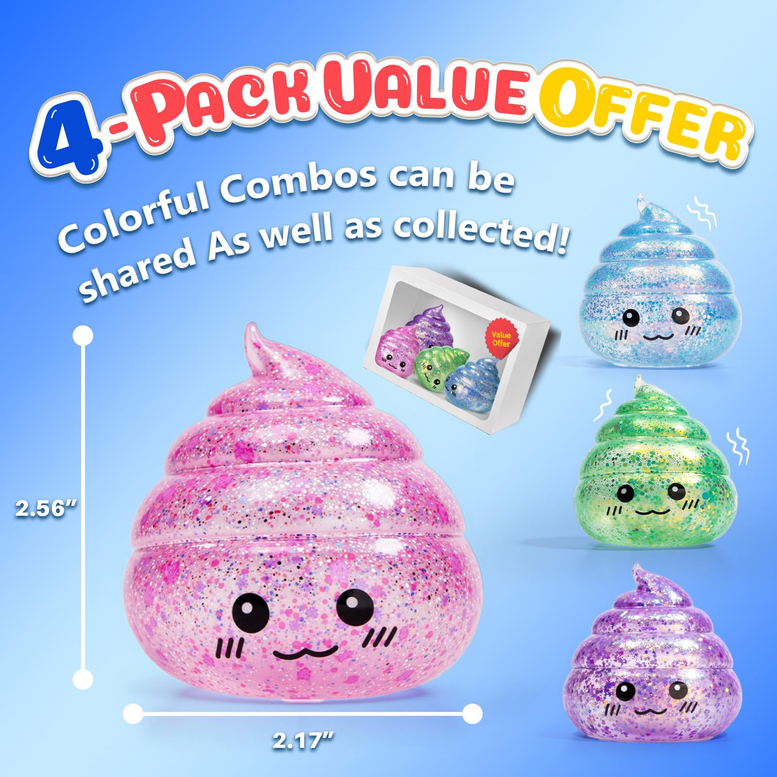 Fidget Toys for Kids & Adults: 4 Pack Poop Prank Gross Sensory Squeeze Toy - Large Size, Stress Anxiety Relief Balls, Gag Gifts for Girls Boys Teens Party Favors, Toys for Ages 6 7 8 12 Years Old
