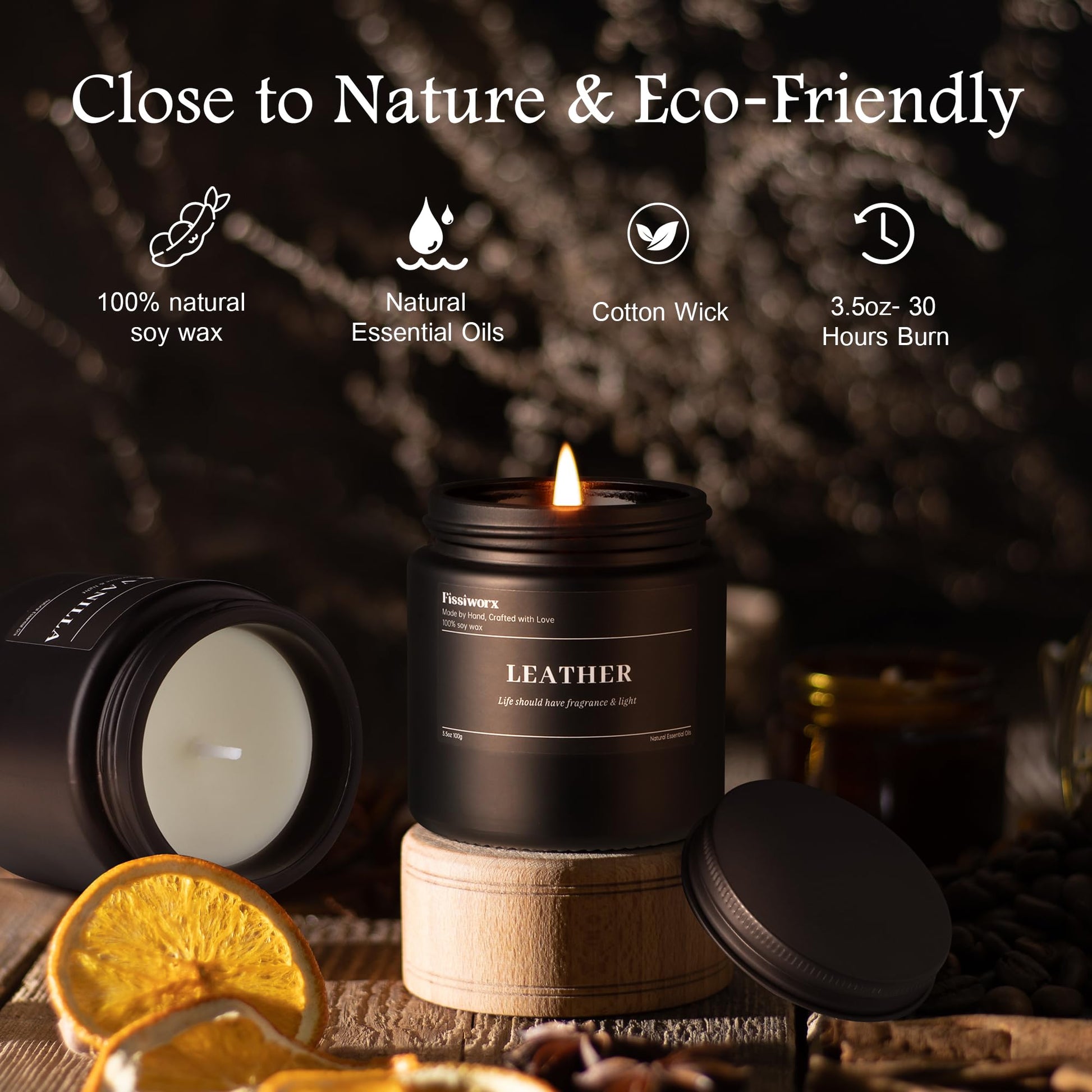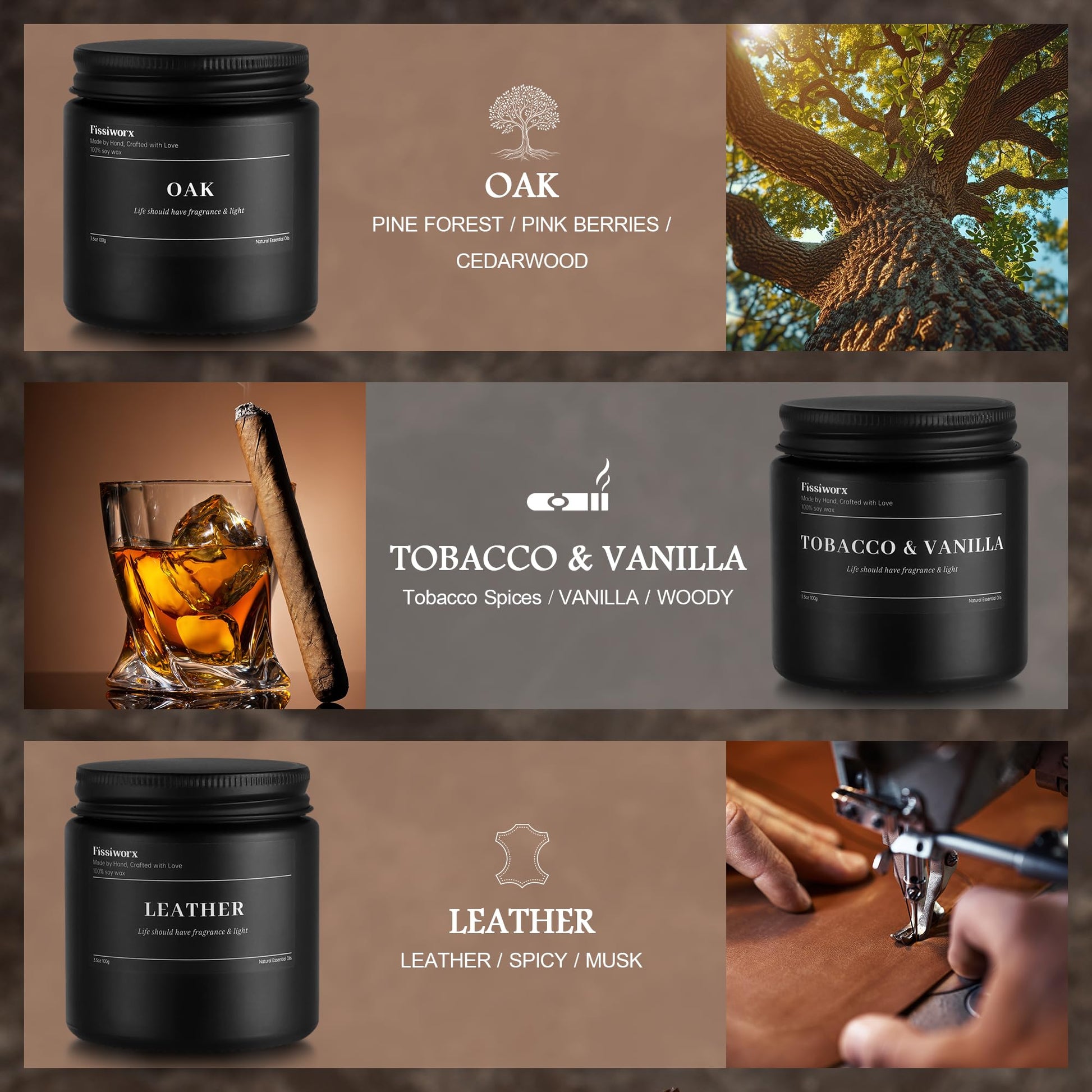 FISSIWORX 9 Pack Scented Candles Set Gifts for Men, Aromatherapy Candle Set with Scents (Leather/Vanilla/Oak) - Gift for Dad, Boyfriend, Birthday, Father’s Day, Anniversary