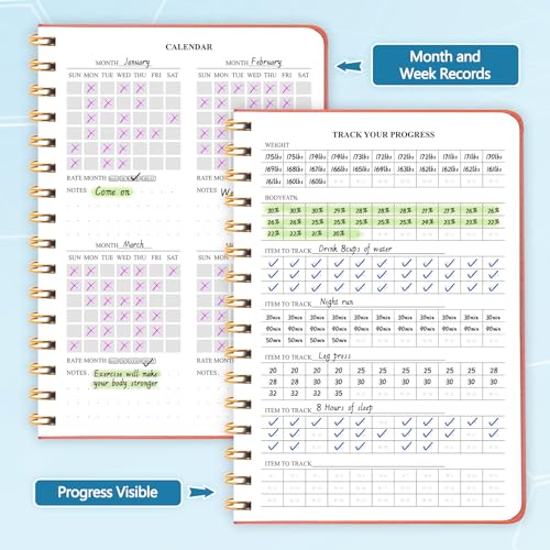 - Set Fitness Goals - Fitness journal with up to 12 goals, 8-month calendar tracks exercise frequency for organized fitness journey.