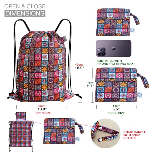 - FOLDABLE: The drawstring backpack can be folded into its inner pocket, and stored in the car, handbag, your pockets, great for taking with you anywhere you want.