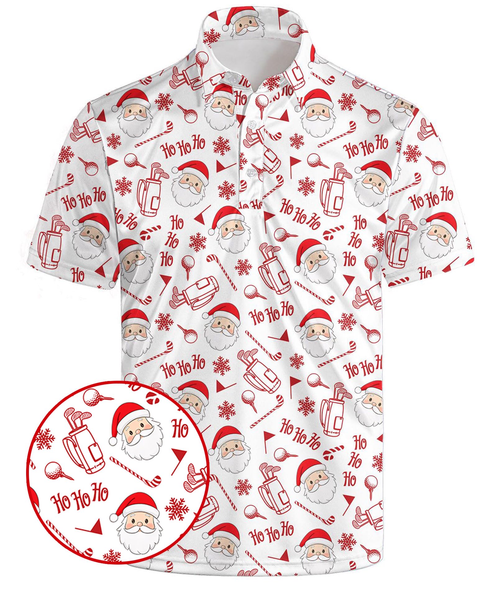 - Christmas Polo Shirt for Men: Fun Christmas golf shirts for men features a classic polo collar, three button placket and spread collar are convenient and beautiful;men's christmas polo shirts 4 way stretch christmas golf polo helps you maintain your full range of motion,allowing for effortless swings from both the tee and the fairway;Whether you are practicing your swing, playing with friends, or simply going for a walk,This Funny Christmas theme party shirt for men is the perfect choice for you