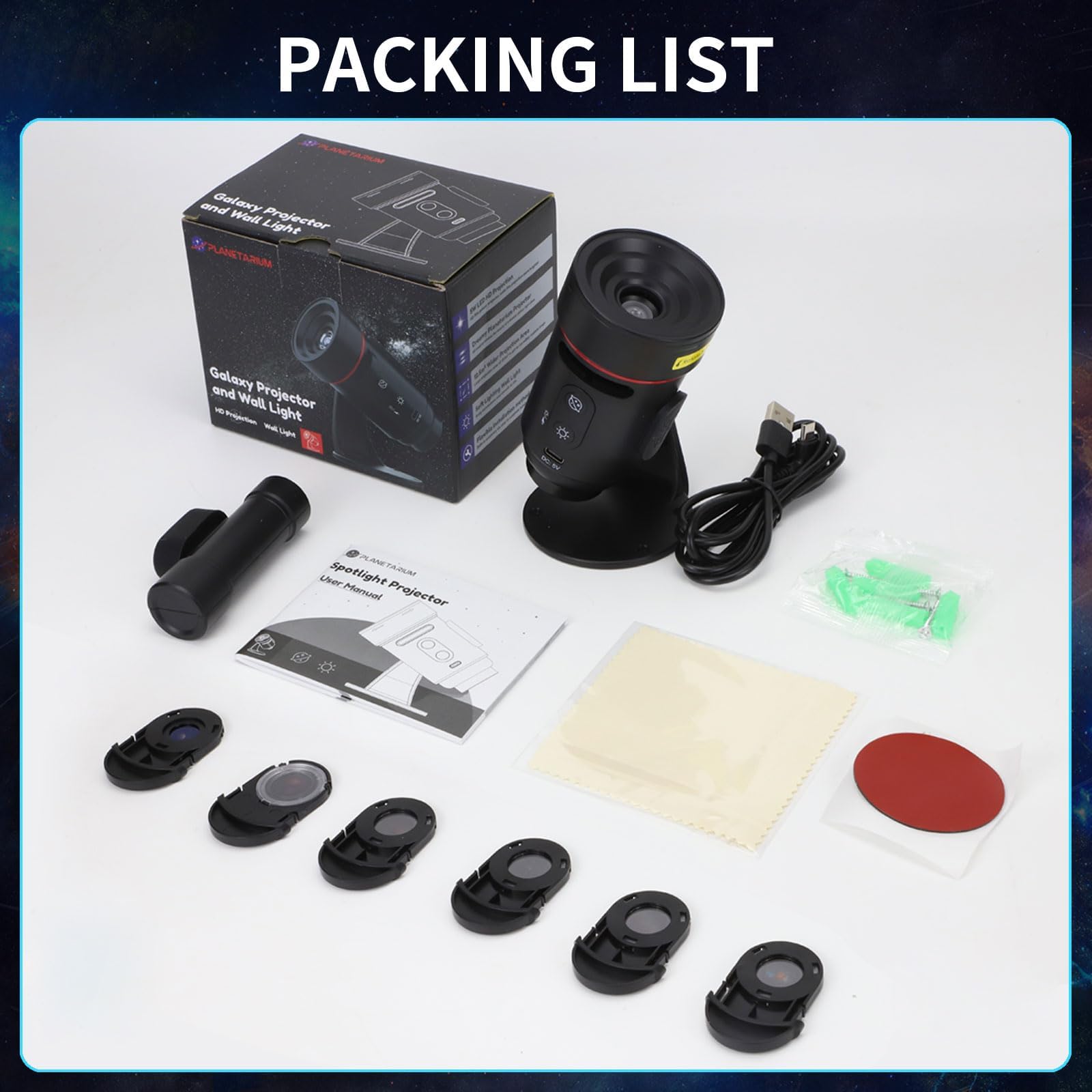 Galaxy Planetarium Projector, Starlight Headlines for Car with Rechargeable Battery Indoor Corridor LED Wall Light and Outdoor Camping, HD Image Adjustable Focus, 360° Rotation