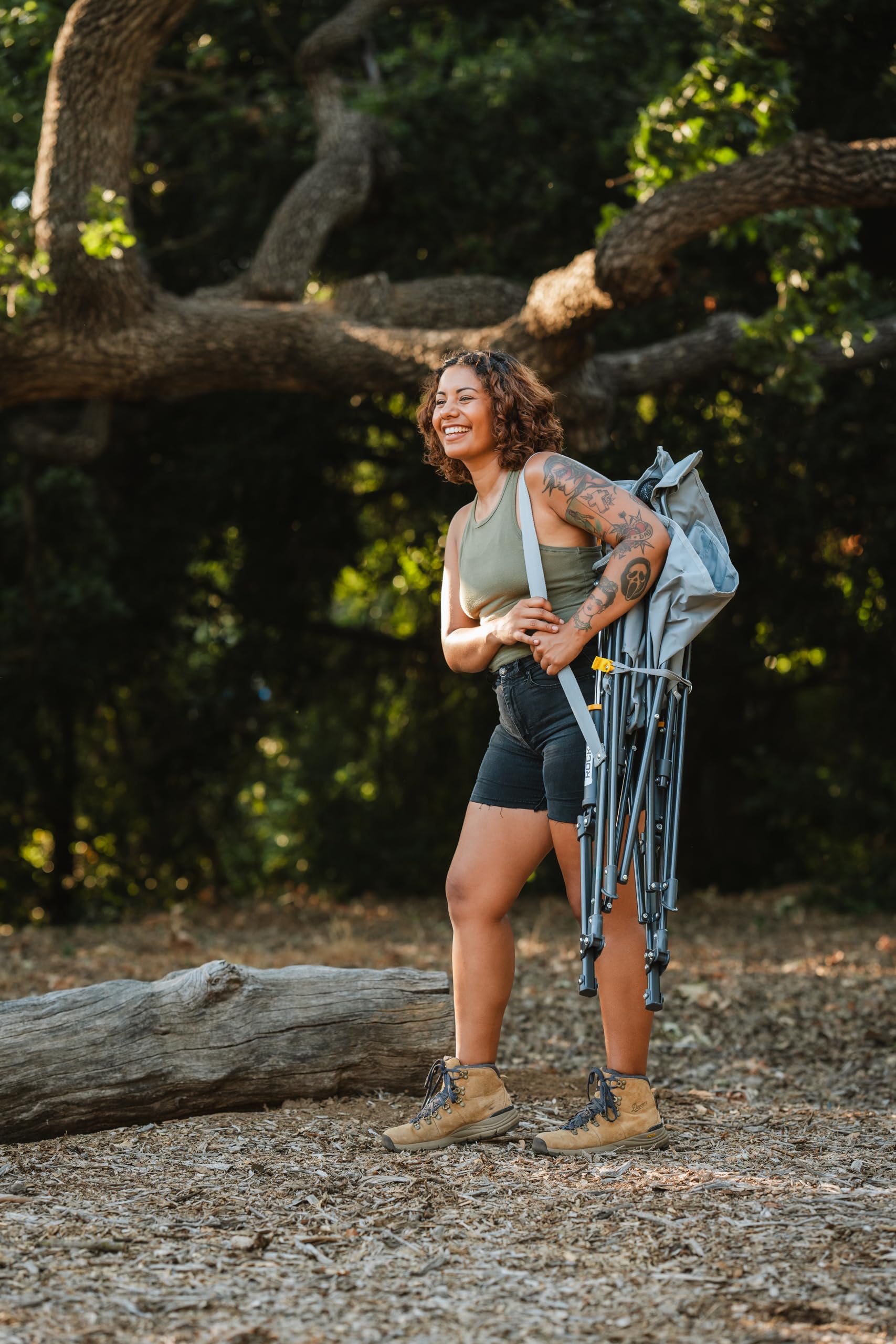 - Rocking Chair for Outside: Complete with patented spring-loaded shocks and a durable mesh backrest, this portable folding chair for outside provides superior support and stays cool on hot days