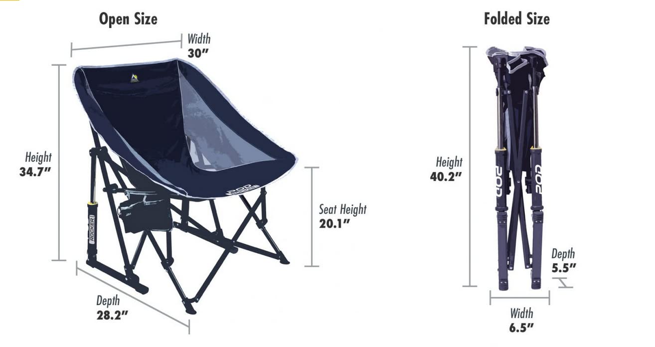 Details: Designed with patented Spring-Action Rocking Technology, the GCI Outdoor rocker delivers smooth rocking action while you enjoy your favorite outdoor activities. These beach chairs for adults feature a structured sling-style seat, a side beverage and phone holder, and a convenient carry bag. These beach and camping chairs are constructed of sturdy powder-coated steel engineered to support up to 250 pounds. Outdoor rocker weighs 11.7 pounds and measures 28.2 x 30 x 34.7 open with a seat height of 20.1 and folds to 5.5 x 6.5 x 40.2 inches. This folding lawn chair is ideal for any outdoor activity, including camping, tailgating, fishing, and trips to the beach. Manufacturer’s one-year limited warranty.