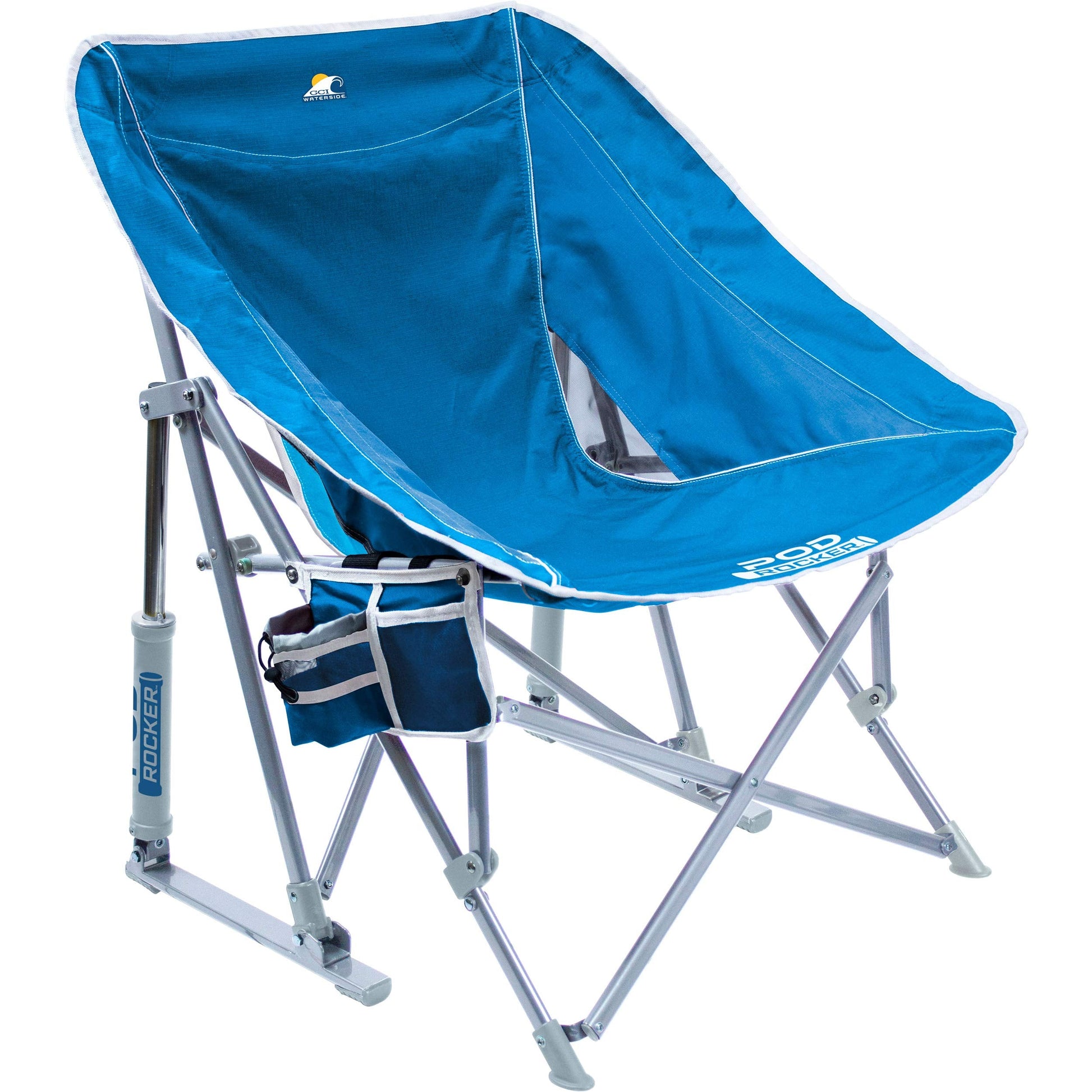 - SUN. SURF. SAVOR. Relax by the water in the Pod Rocker, an adult rocking chair from GCI Outdoor. This beach chair's sling-style seat cradles you in comfort while the attached beverage holder keeps cool drinks close by.