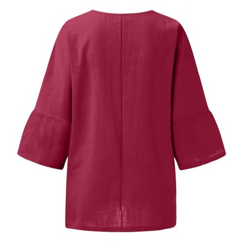 - 【Features】V neck button down shirts for women, lapel short sleeve button down blouse, casual loose fit collared linen work blouse tops, women's solid color cotton linen casual shirt top, comfort summer tops women's 3/4 sleeve cotton linen blouses top.