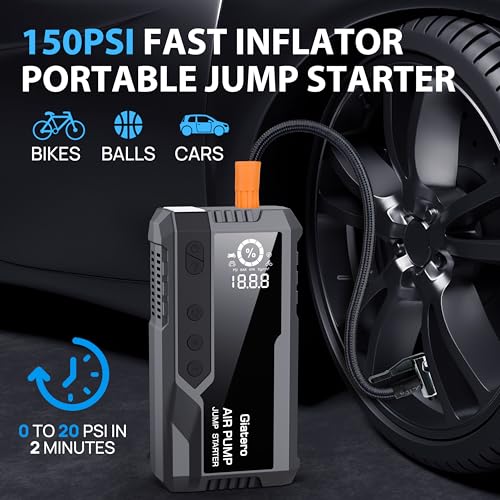 Giatero Jump Starter with Air Compressor, 4000A 150PSI Car Battery Jump Starter Portable (9.0L Gas/8.0L Diesel), 12V Jump Box Battery Pack with Large LCD Display, 3 Modes Flashlight and Storage Bag