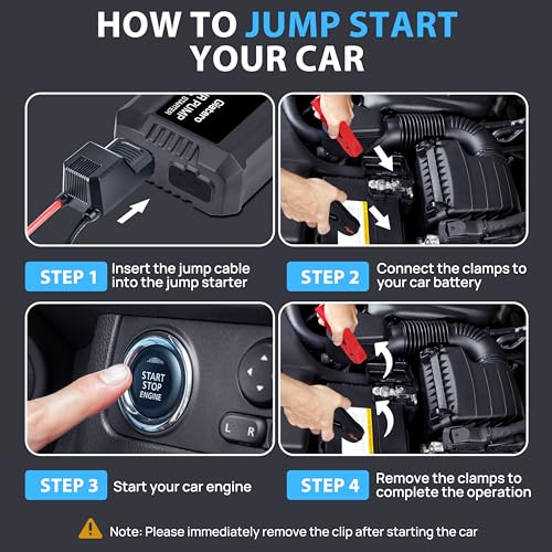 - HIGH-PERFORMANCE CAR JUMP STARTER - Giatero Q21 car jump box equipped with a 4000A Peak current and can instantly start 12V vehicles (9L Gas/8L Diesel engines). Even if the battery voltage is extremely low, simply press the 'BOOST' button to forcefully jump start your car. This jump box for car battery is built to withstand extreme weather conditions ranging from -4°F to 140°F. Supporting over 1000+ charging cycles and equipped with ultra-long standby time, it is always ready to help you