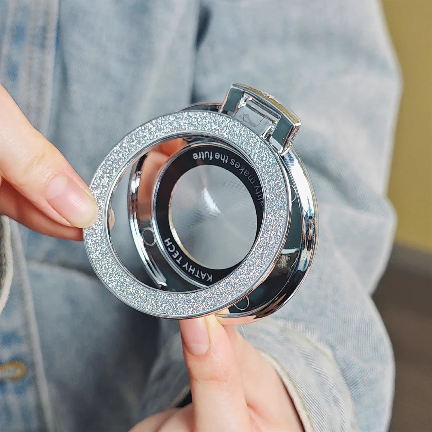This Glitter Bling Phone Ring Holder Stand combines style and functionality. Its shimmering design adds a touch of glamour to your phone while providing a firm grip and stand for comfortable use. Keep your device secure and enjoy the convenience of hands-free viewing with this sleek and versatile accessory.