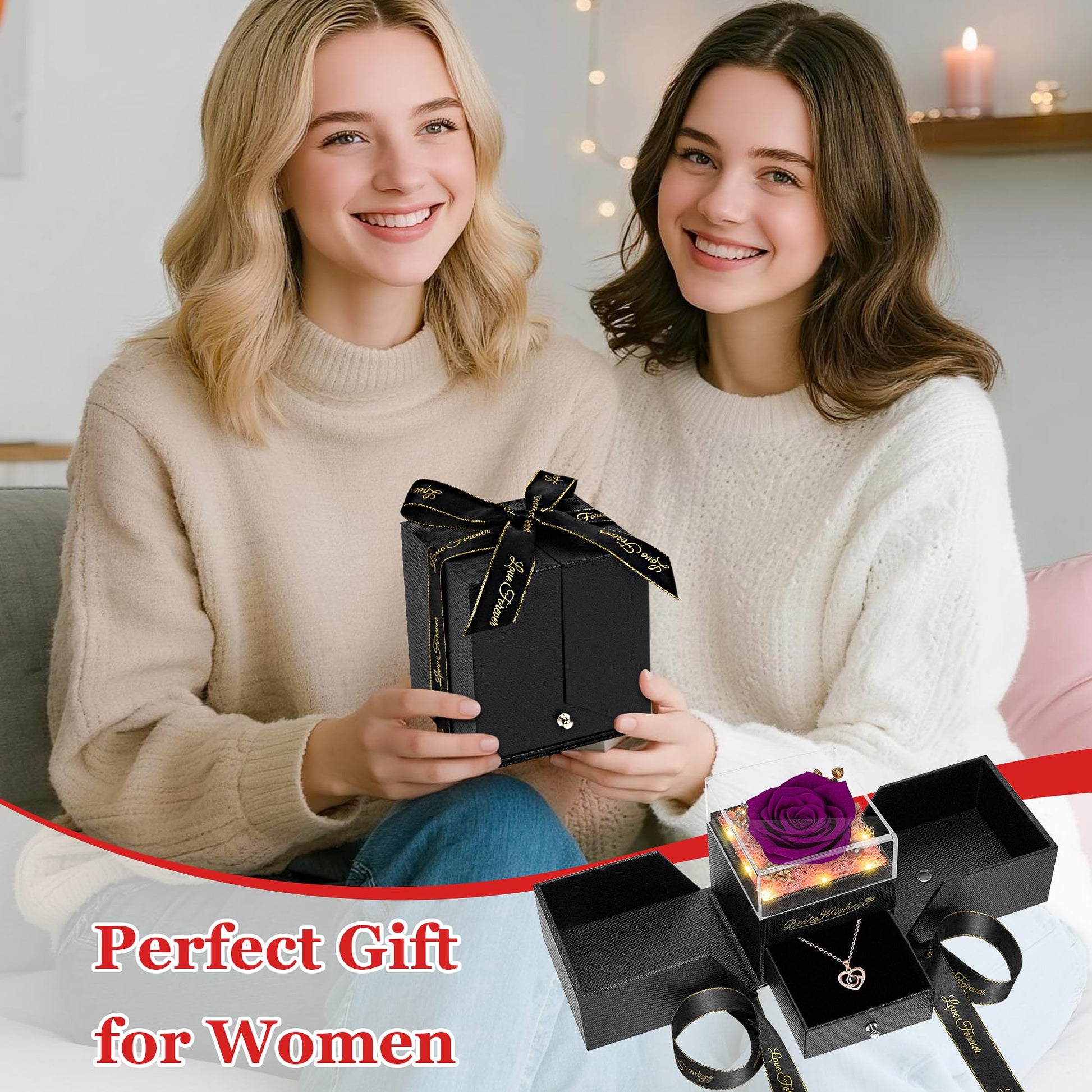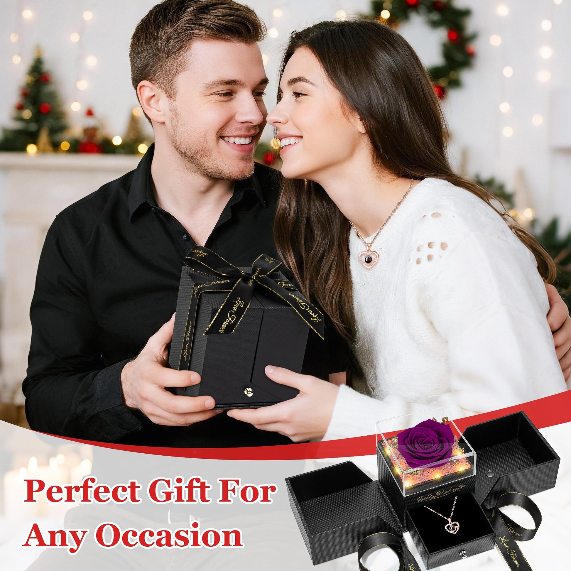 - Perfect Christmas Gifts For Her Women Mom: Ideal for Christmas gifts for wife. Mom gifts for her birthday, Christmas,anniversary gifts for wife, womens gifts, romantic gifts for girlfriend, special gifts for her. Preserved flower gift with necklace and light is very dainty and pretty. The preserved rose tells her everyday how much I love you. A lovely preserved flower gift that will be cherished by anyone who is special to the giver