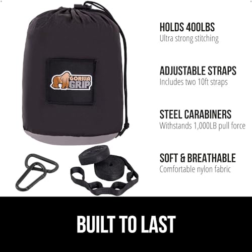 Gorilla Grip Durable Portable Camping Hammock, Holds 400lbs with Heavy Duty Tree Straps, Comfortable Travel Swing, Camp Hammocks, Easy to Use and Install, Outdoor Essentials, Blue, 9x4.5 FT