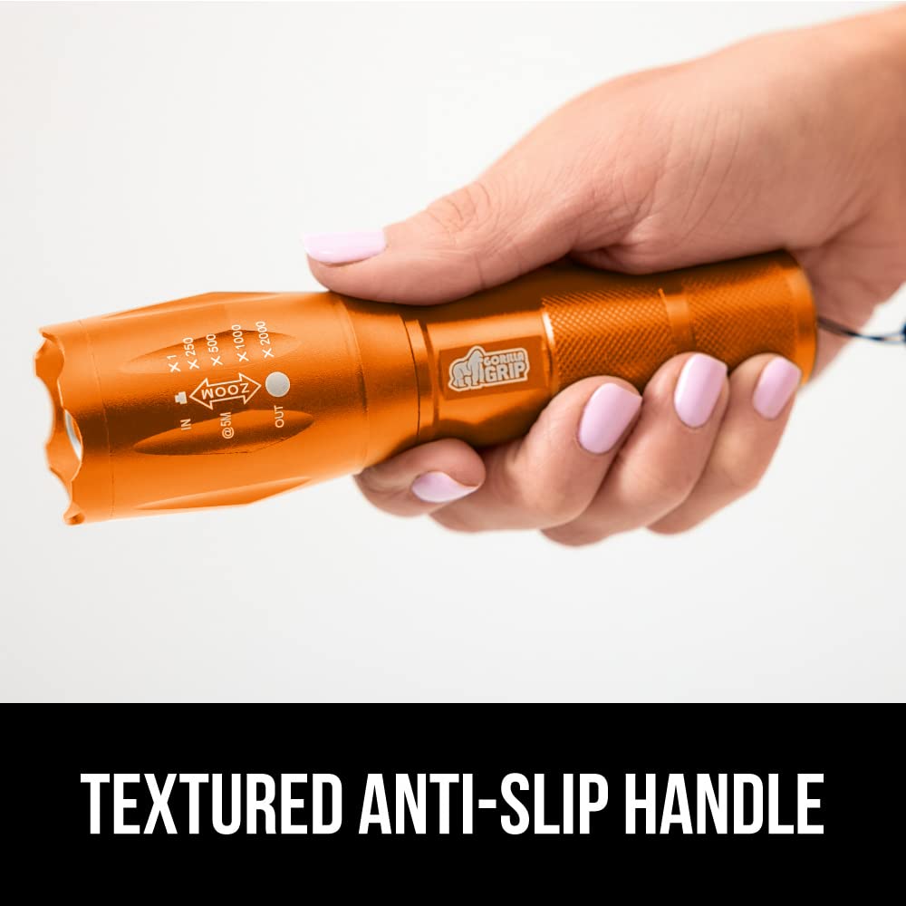 Gorilla Grip Powerful LED 750 FT Water Resistant 5 Adjustable Mode Tactical Flashlight, High Lumens Ultra Bright Battery Life Zoom Flashlights, Small Camping Car Mini Flash Light Accessories, Orange