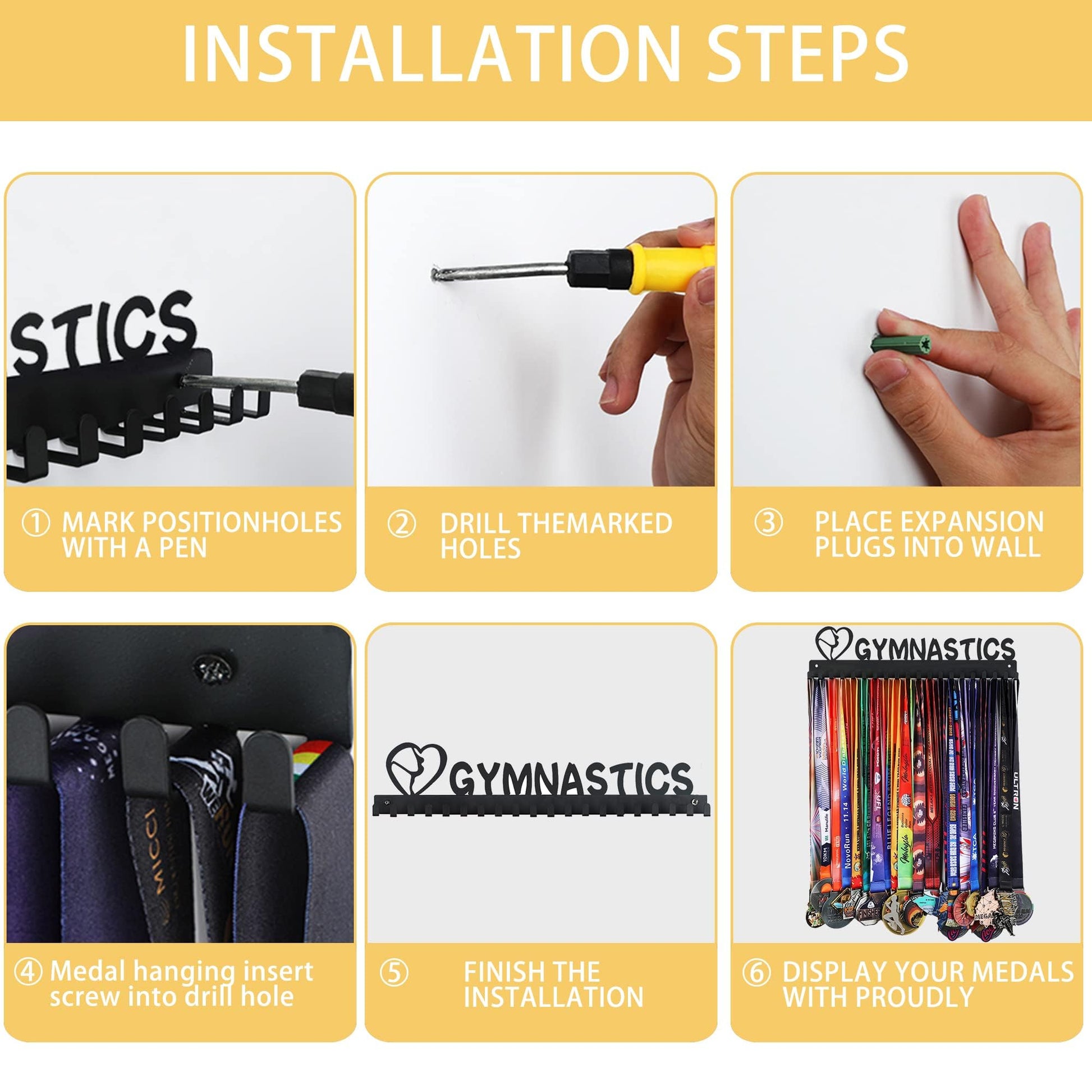 Goutoports Gymnastics Medal Holder - Medal Hanger Display - with 20 Hooks Hold Up 60 Medals - Equipped with Mounting Accessories Easy to Install Easy to Use