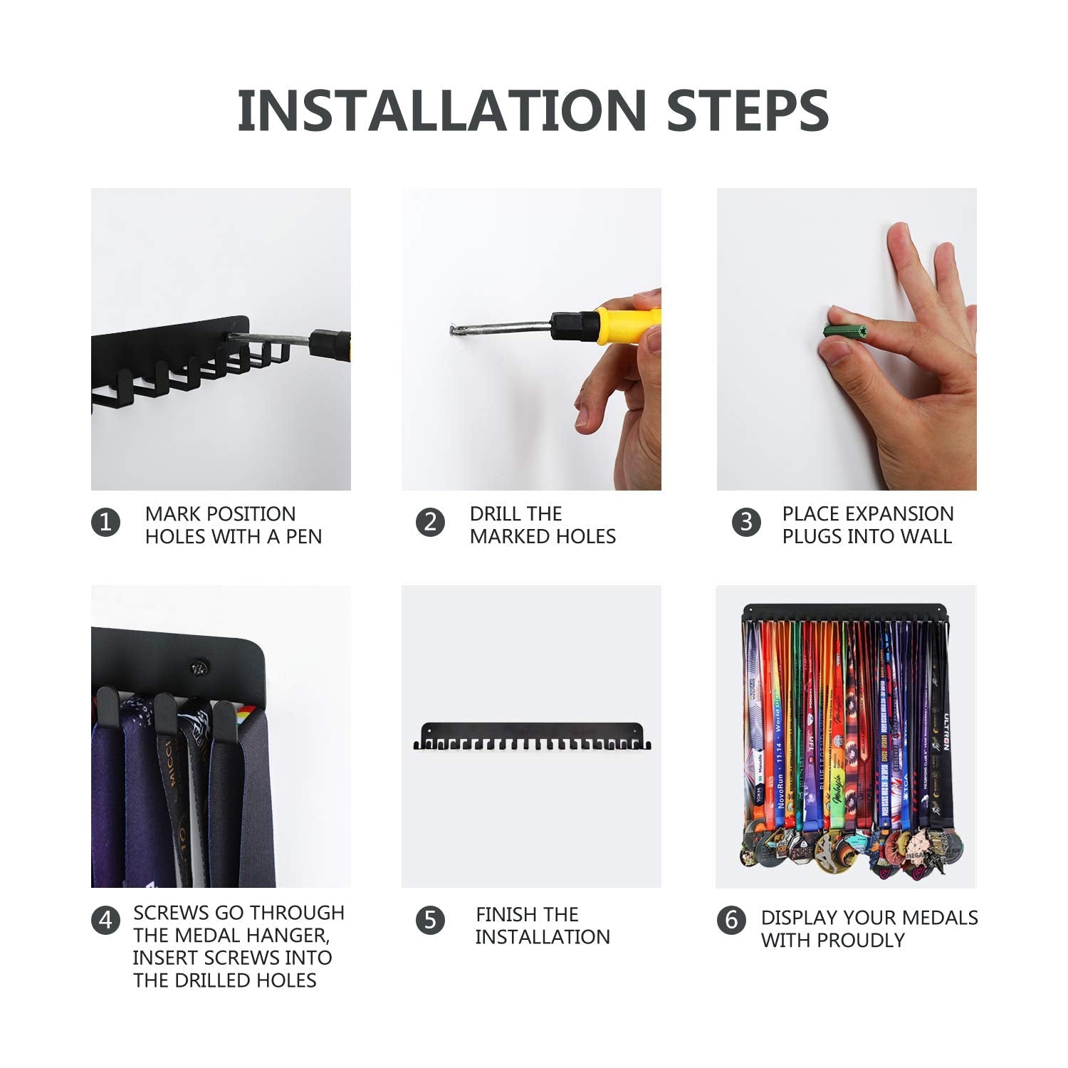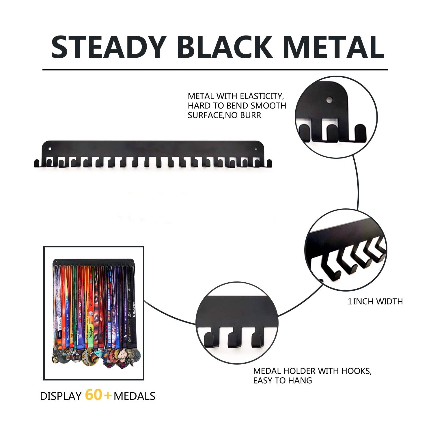 Goutoports Medal Display Hanger - Sport Award Plaques Holder Rack for Wall Mount - Black Steel Metal Holder with 20 Hooks Hold Up 60 Medals Easy to Install