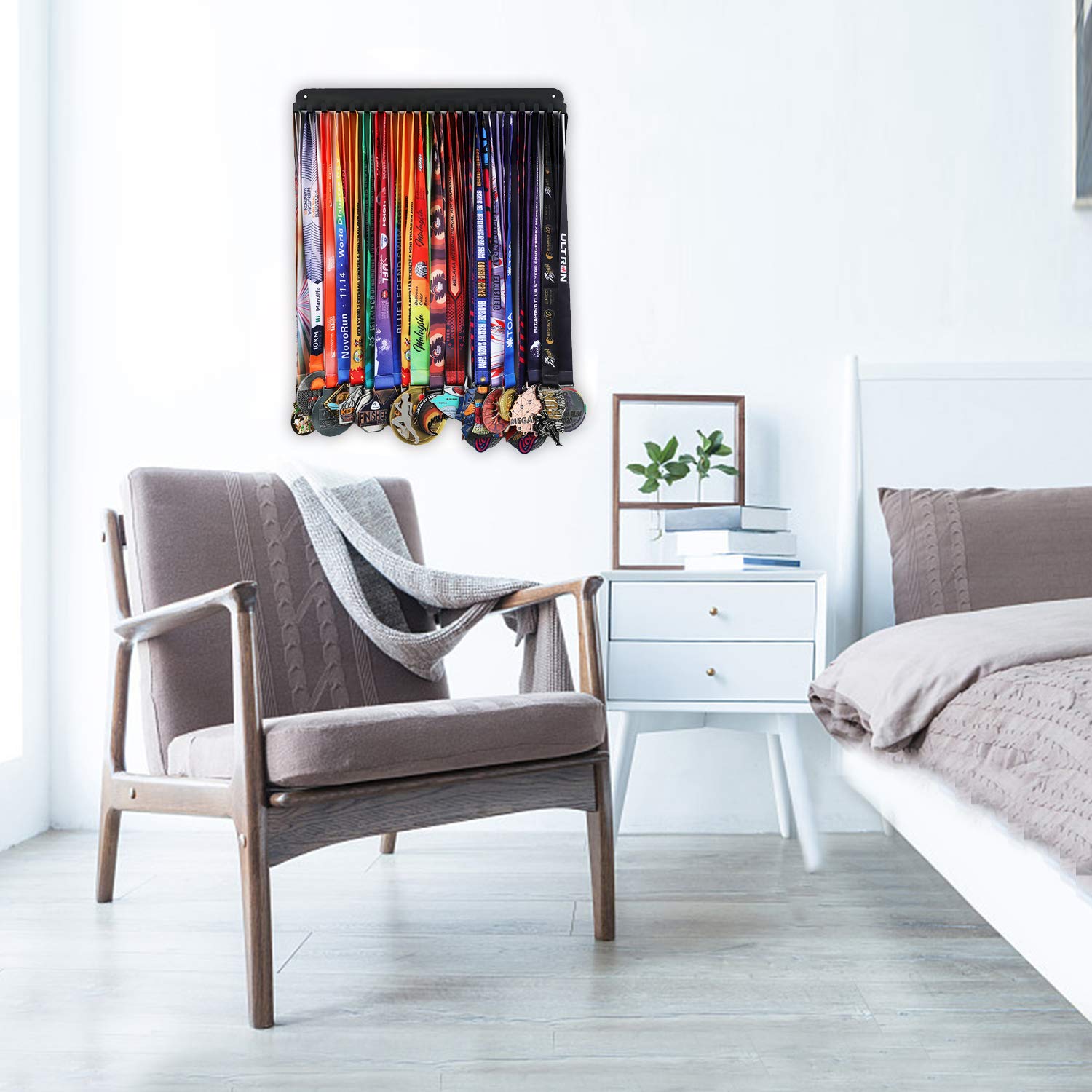 - **GREAT GIFTS IDEA**: Our medal hanger is the perfect choice for athletes and sports enthusiasts who want to display their gymnastics, soccer, dance, triathlon, wrestling, karate, hockey, volleyball, baseball , football medals. The 20 hooks of the gymnastics medal hanger can accommodate medals, ribbons, and sports bands. It can be placed in various settings such as the living room, bedroom, gym room, or office. This versatile medal and trophy holder can proudly display your collection.