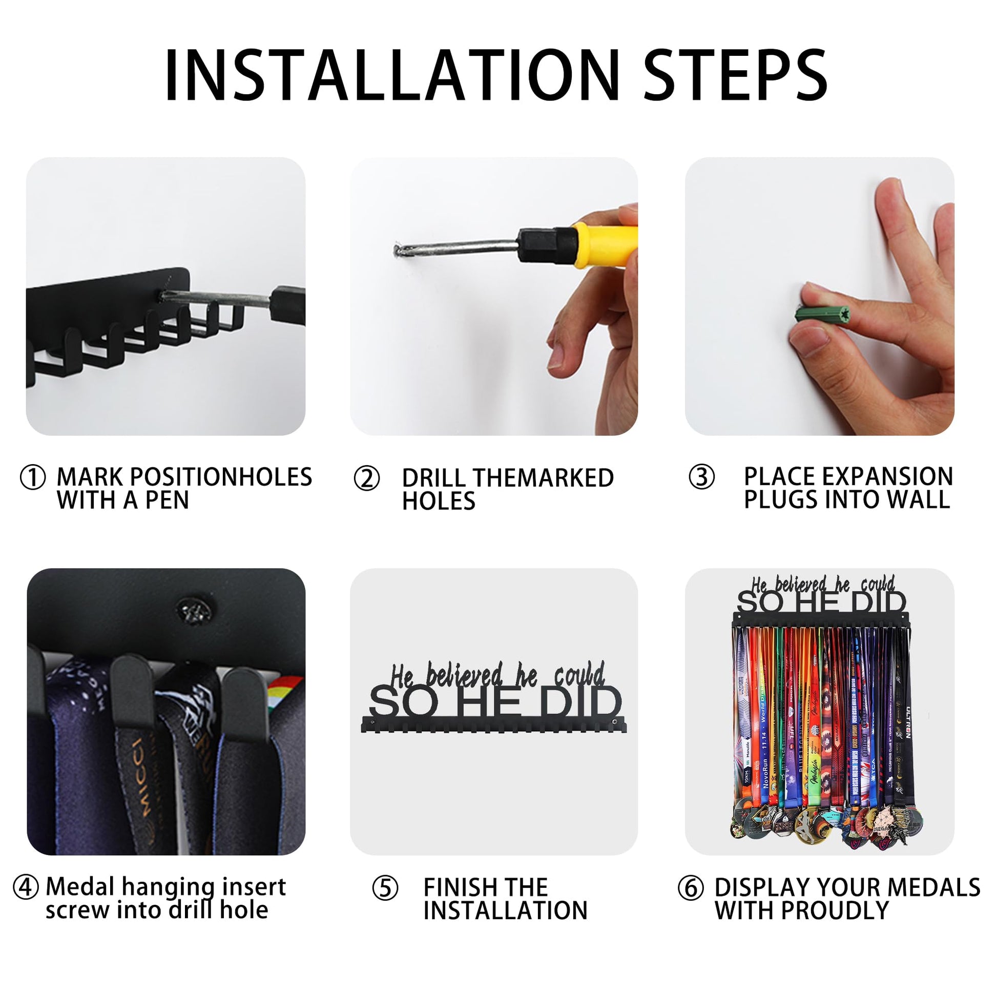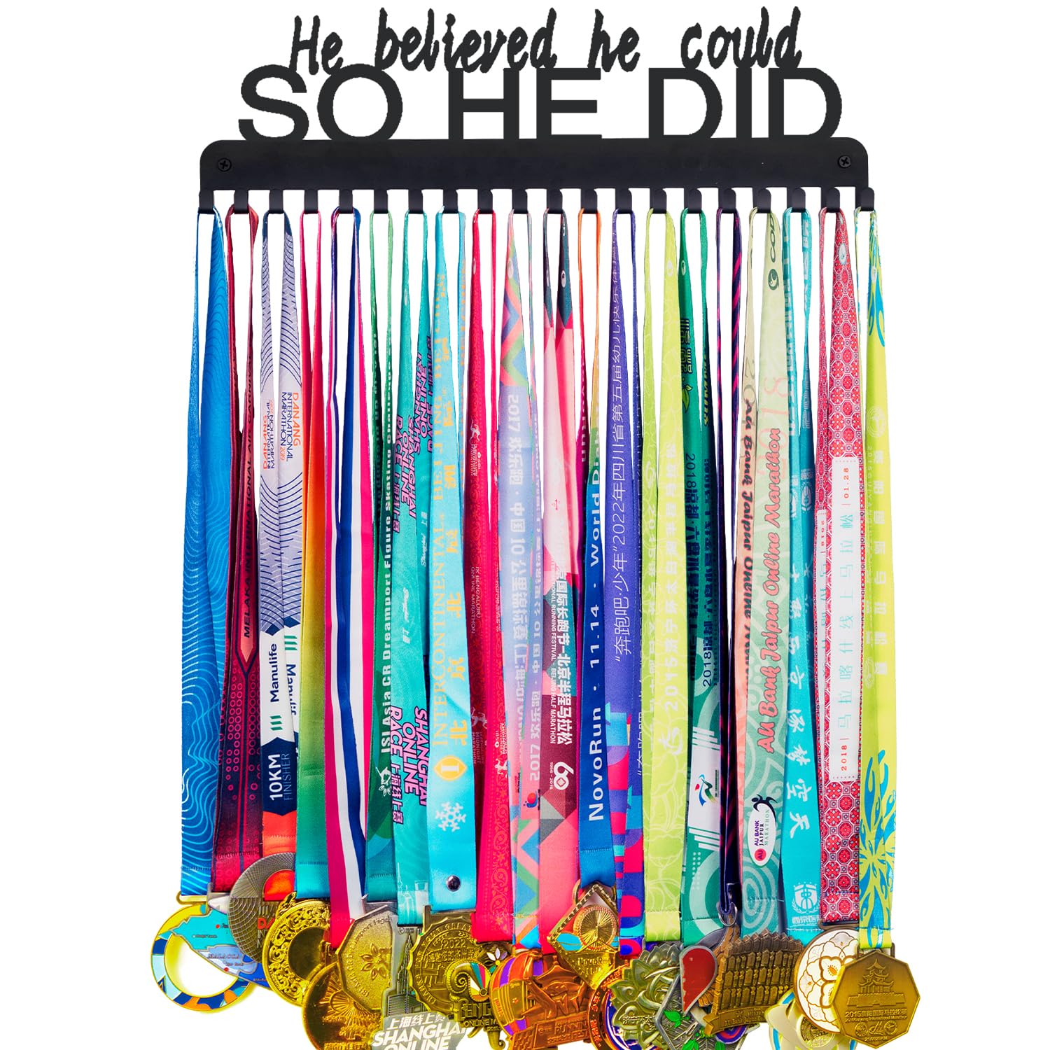 Goutoports Medal Holder Display Hanger - He Believed He Could He Did - Personalized Medal Wall Hanger for Sport Race Runner Sturdy Black Steel Metal Over 60 Medals Easy to Install