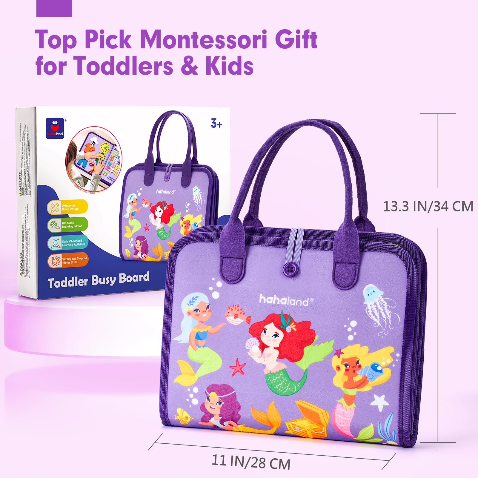 hahaland Busy Board Montessori Toys - 3 Year Old Girl Gifts Bithday Gift Ideas - 8 in 1 Preschool Learning Activities - Christmas Toddler Stocking Stuffers Gifts