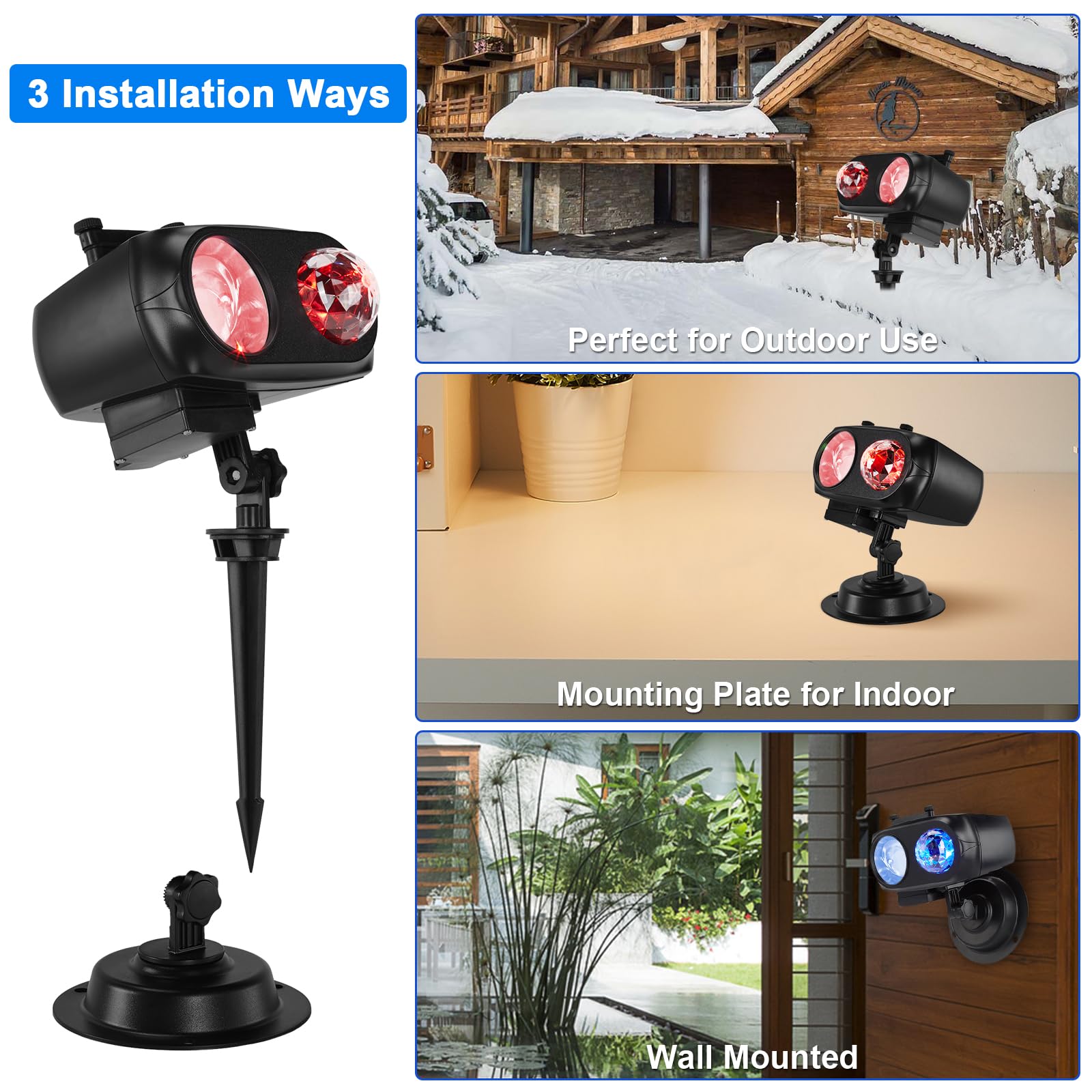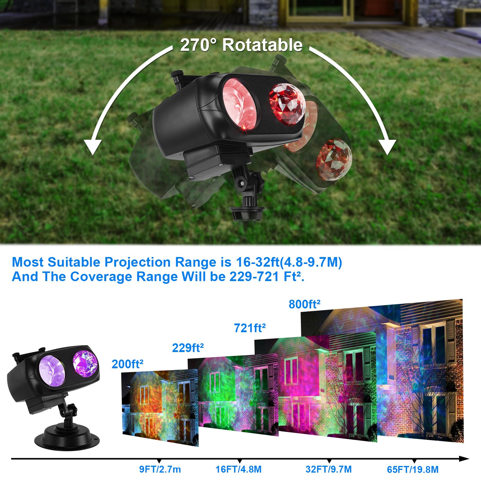 - Improved 2-in-1 Projector Light:This holiday projector light features RGBW technology with 10 vibrant colors for water wave ripple effects and 10 high-definition slides patterns. The unfading slides ensure that the projected patterns remain prominent, maintaining their quality even after repeated use. Choose between the ocean wave mode, slide patterns mode, or use them simultaneously to create various holiday atmospheres.