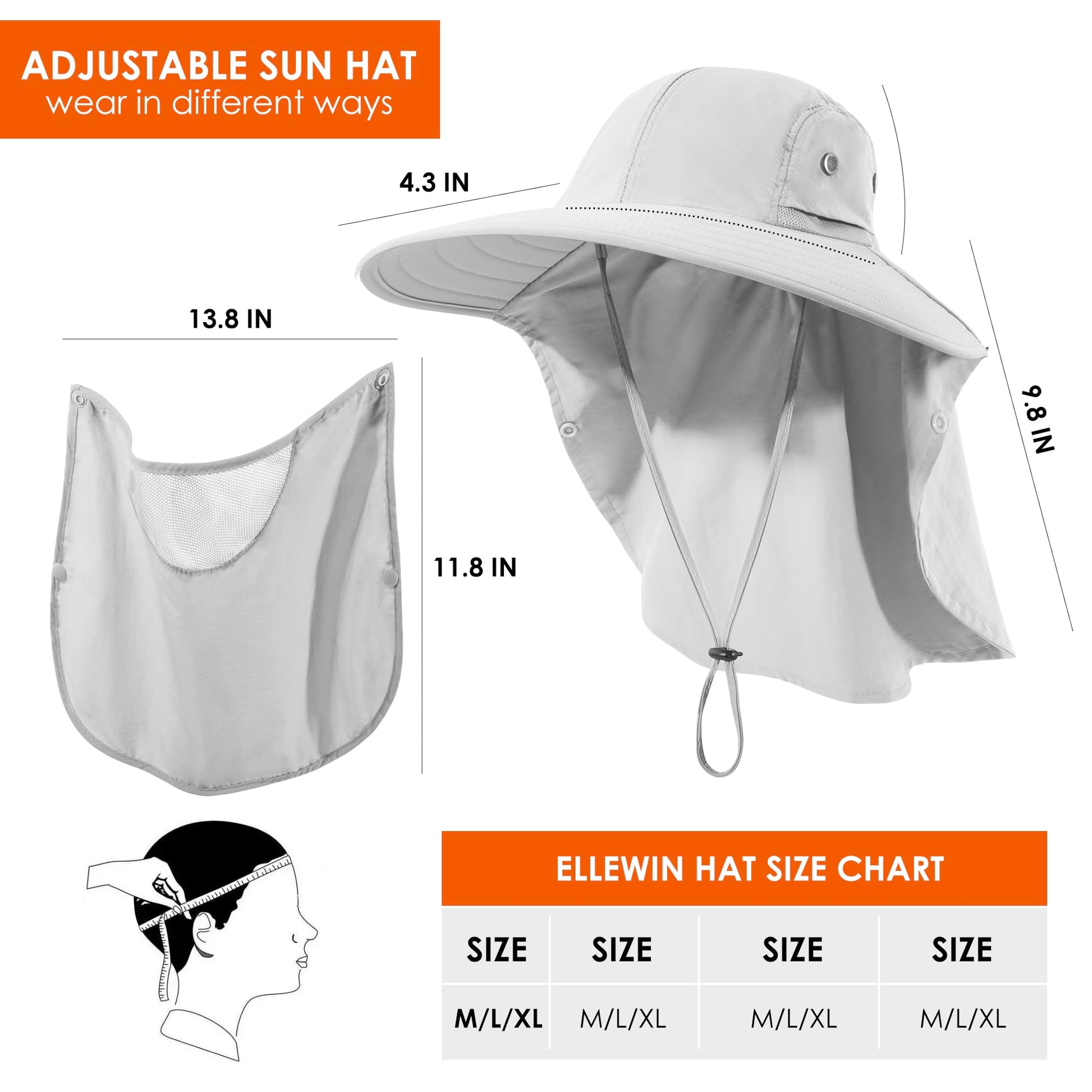 - Hat Size: Unisex design, adjustable drawstring, you can adjust the appropriate cap circumference according to the size of the head, fit different head shapes and head circumferences. The widened brim reaches 4.3 inches, and the widened brim does not obstruct the view. The back swing is 7.2 inches long and provides ample coverage of the back of the neck.