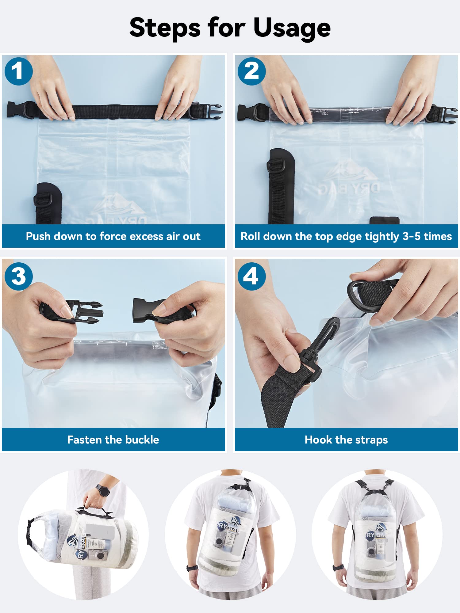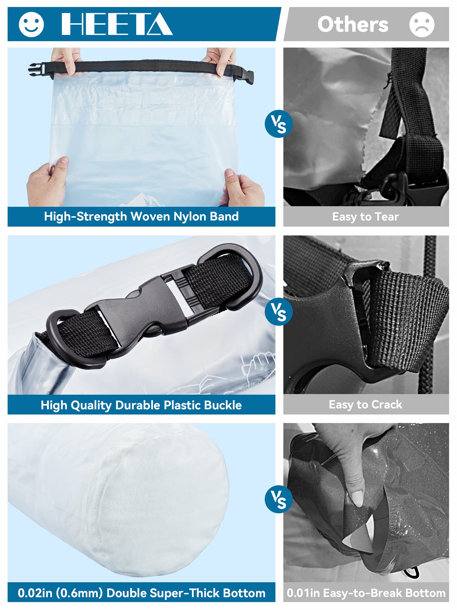 HEETA Waterproof Dry Bag for Women Men, Roll Top Lightweight Dry Storage Bag Backpack with Phone Case for Travel, Swimming, Boating, Kayaking, Camping and Beach, Transparent White 5L