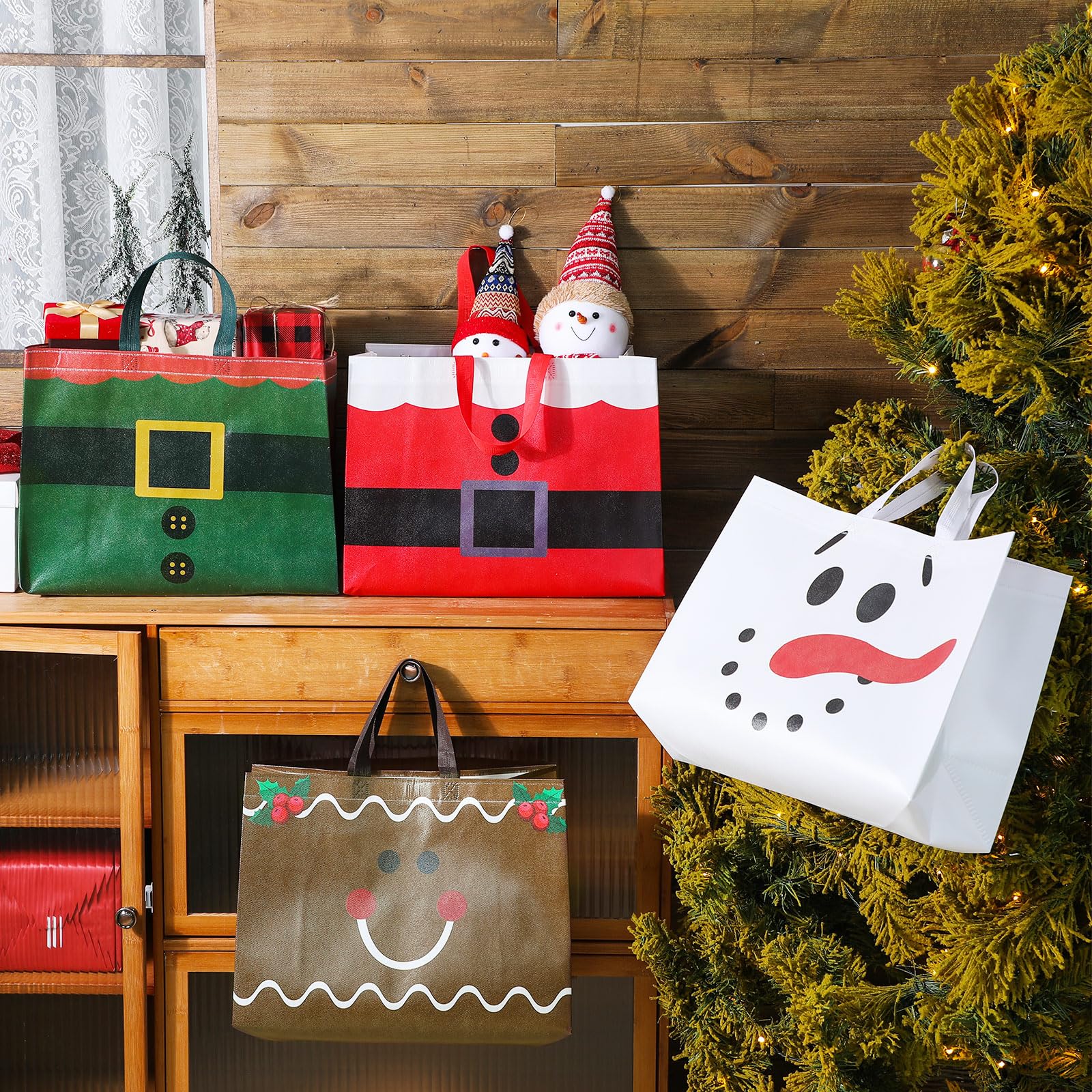 Hosuly 16 Pcs Large Christmas Gift Bags with Handle Reusable Shopping Bags Reusable Non Woven Shopping Bag(Classic Style)