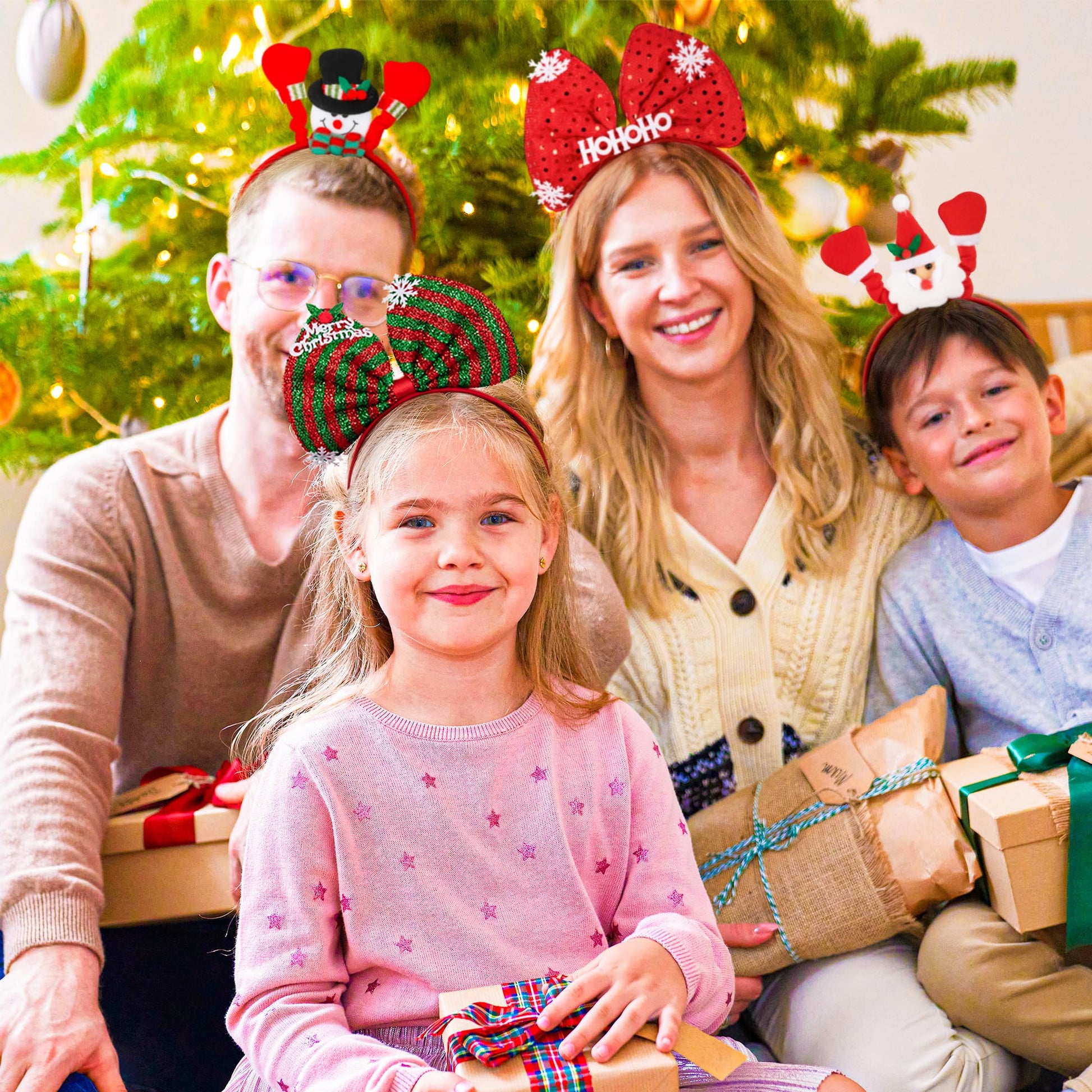HOVACY 12 Pieces Christmas Headbands, Cute Christmas Head Toppers, Various Design Santa Hat Christmas Tree Snowman Reindeer Antler Headwears for Christmas Party Favors, Christmas Decorations