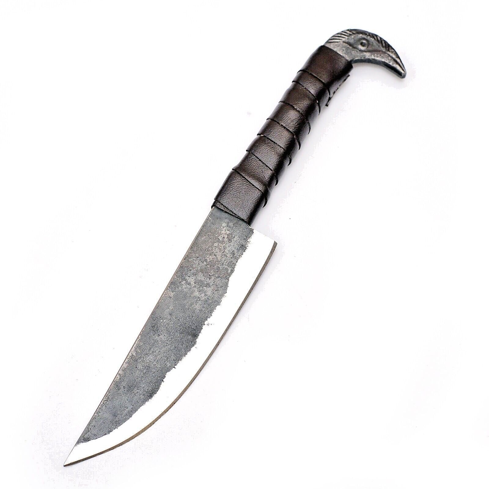 Hunting Knife Fixed Blade Raven Head Hand Forged Viking Knife, High Carbon Steel Blade, EDC Full Tang Outdoor Activities, Camping, Skinning Hiking Knife, Bushcraft Knife, Belt Loop Leather Cover