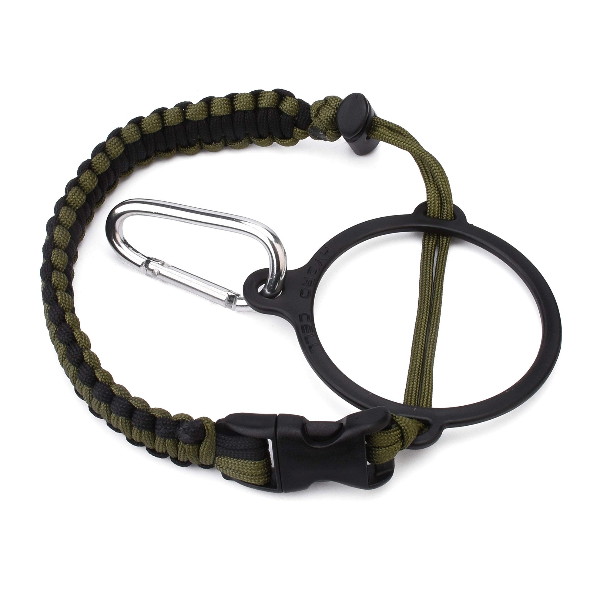 HYDRO CELL Paracord Handle for Wide Mouth Water Bottles - Carrier Strap w/Attachment Ring and Carabiner Accessory. Compatible w/ 64oz, 40oz 32oz, 24oz, 18oz, 14oz Insulated Bottles (Army/Black)