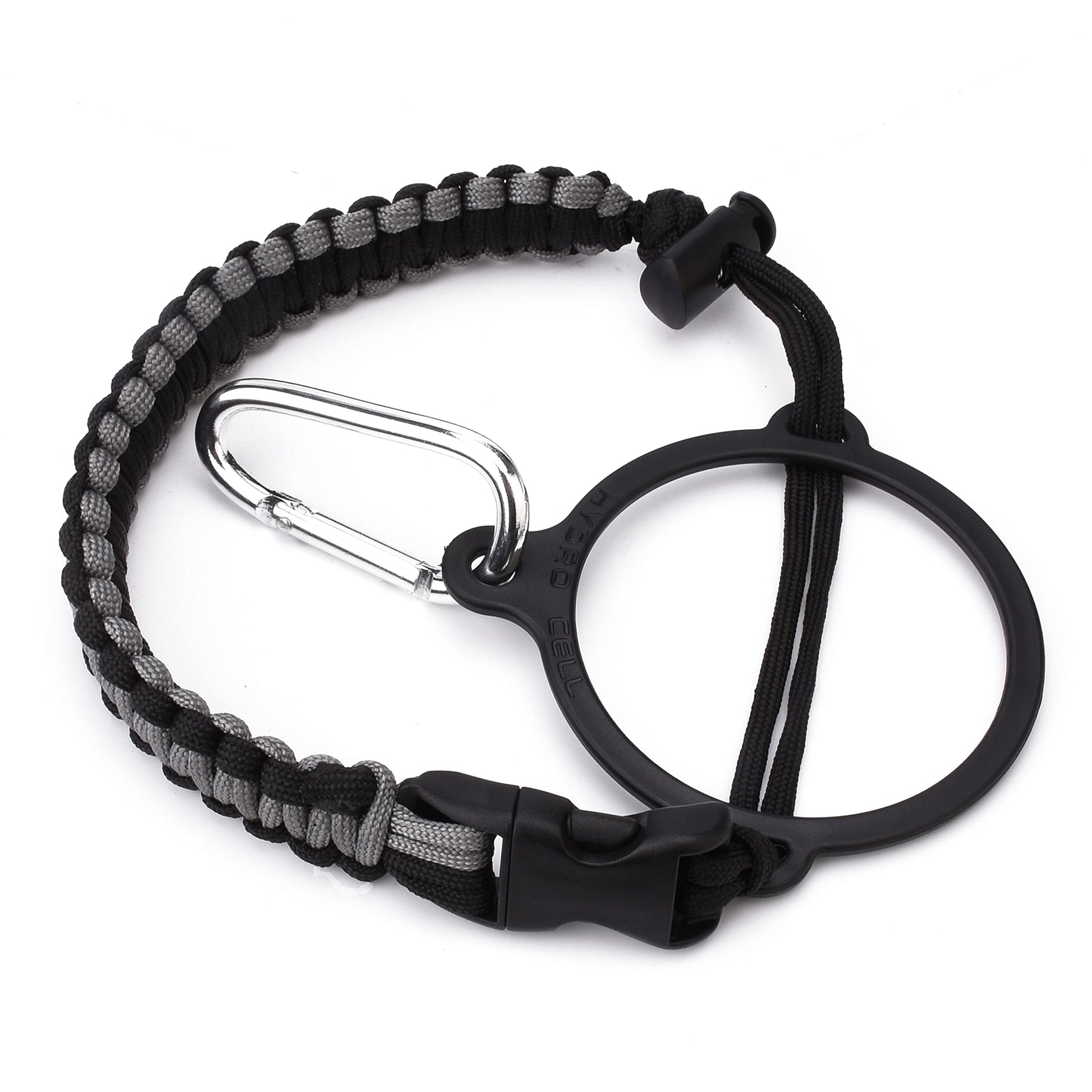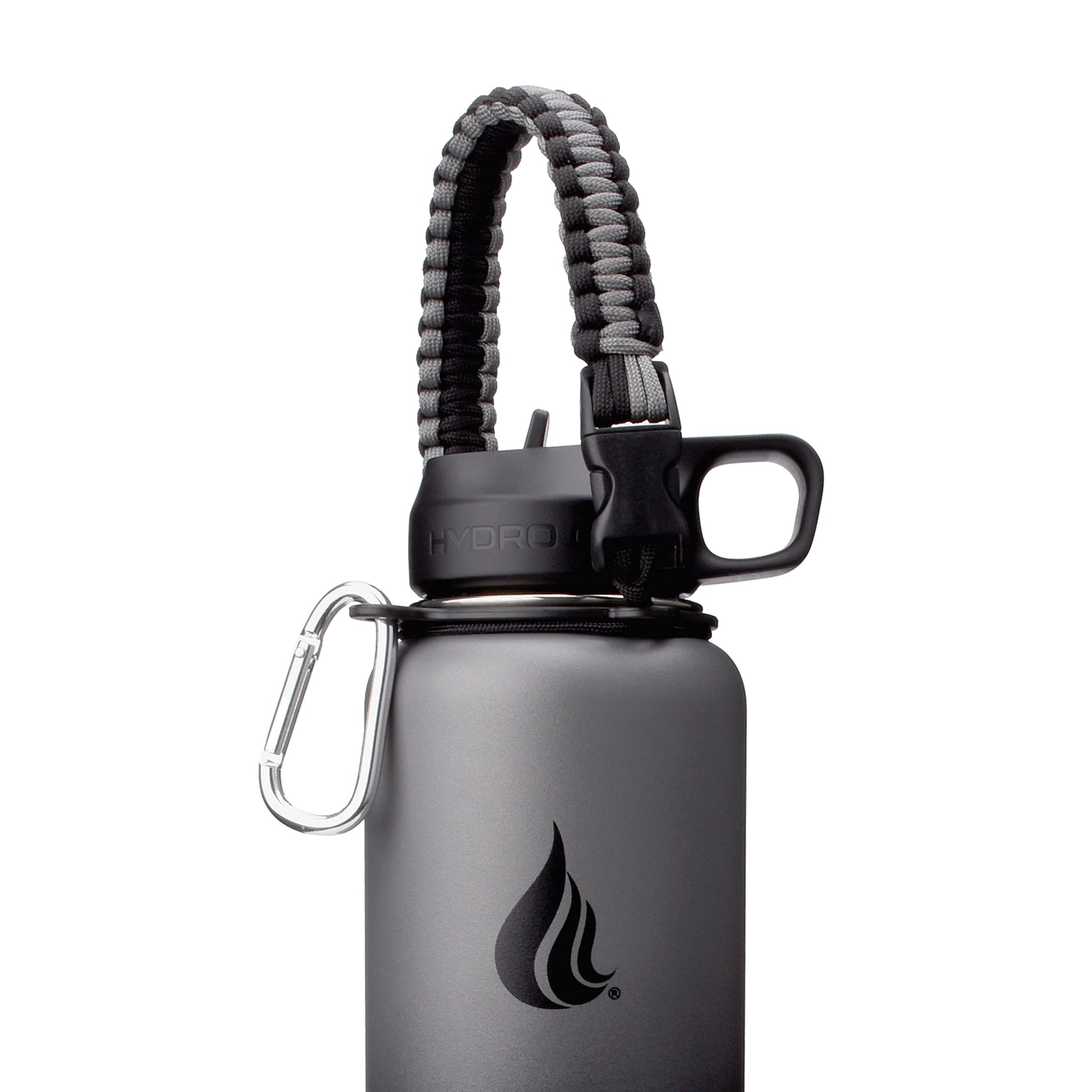 HYDRO CELL Paracord Handle for Wide Mouth Water Bottles - Carrier Strap w/Attachment Ring and Carabiner Accessory. Compatible w/ 64oz, 40oz 32oz, 24oz, 18oz, 14oz Insulated Bottles (Graphite/Black)