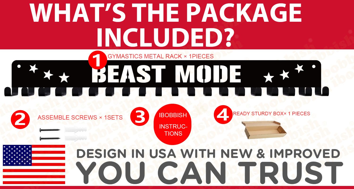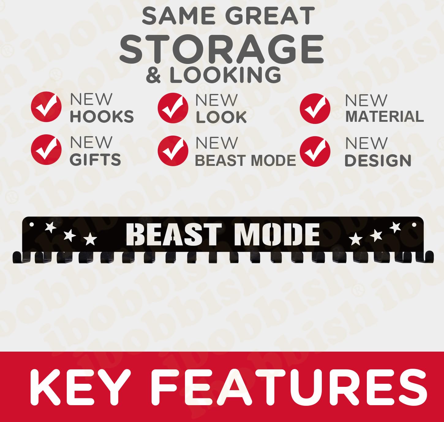 iBobbish Premium Medal Hanger Display BEAST MODE with 20 Hooks,Medal Hanger Display for Wall with 16inchL,race medal display Upgraded Medal Holder display for Wall Wrest,gymanstics,race,soccer,swim