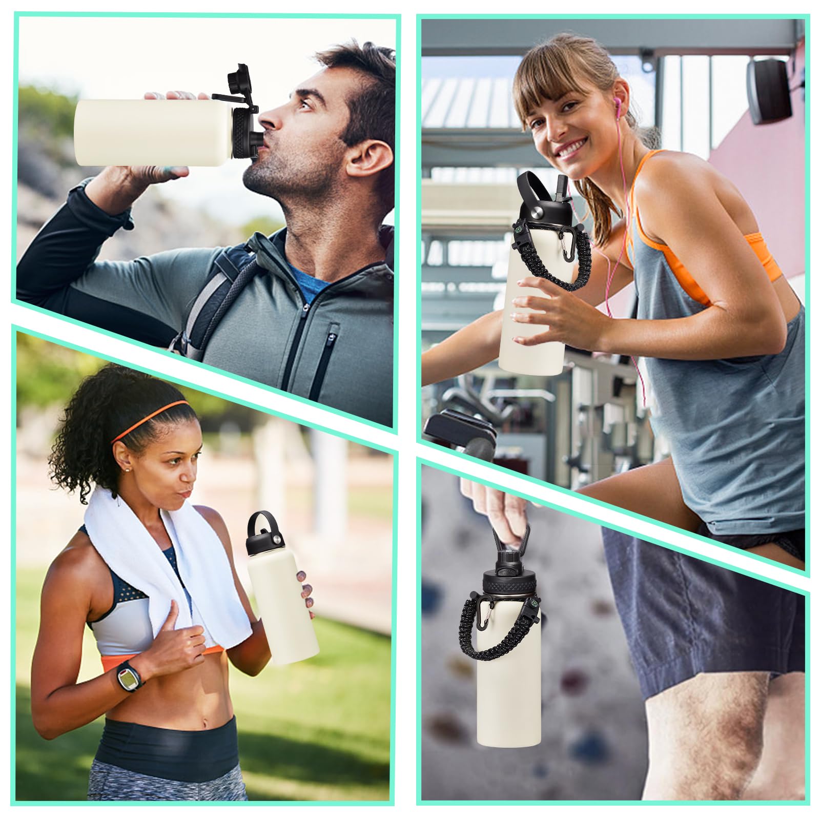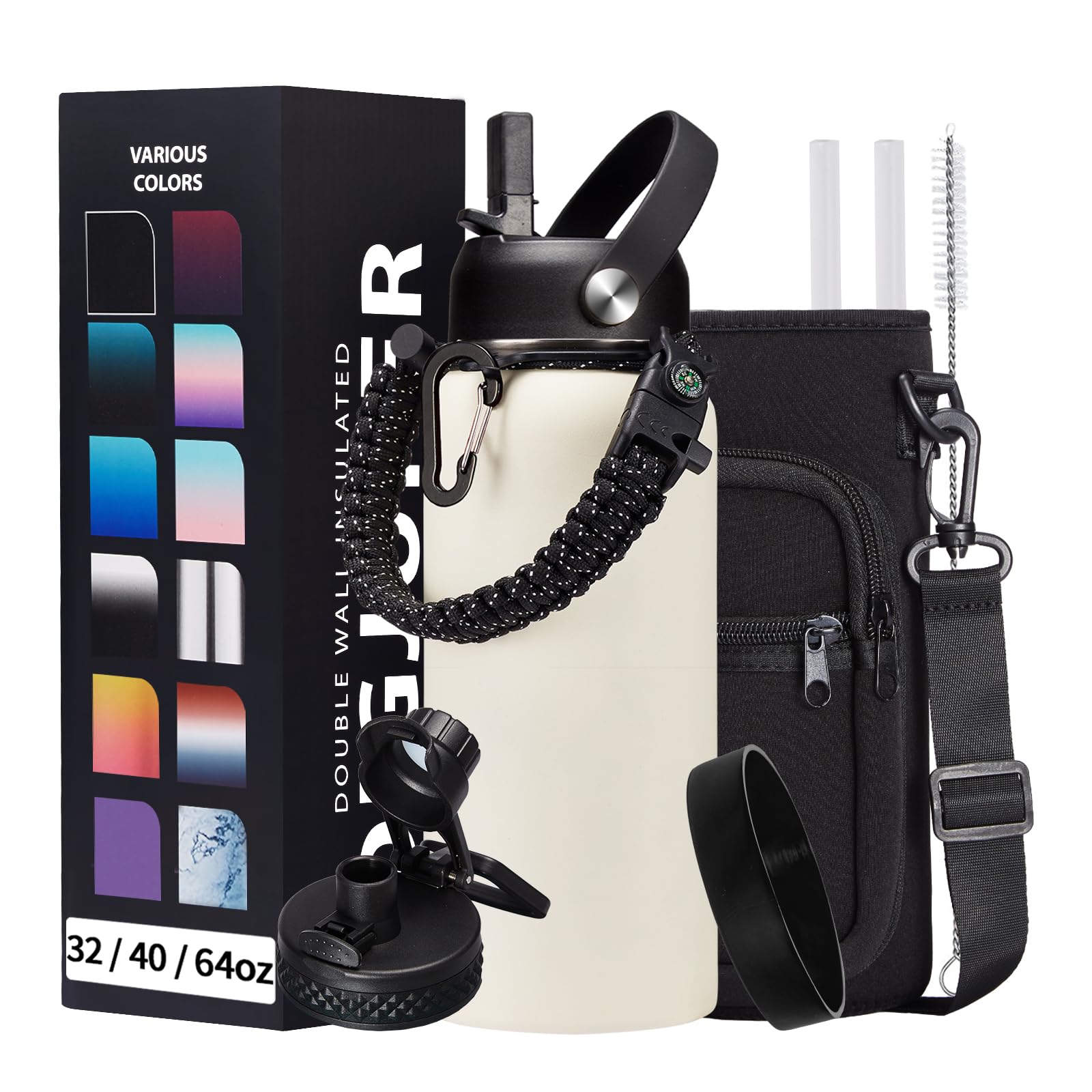 Insulated Water Bottle - 32oz 40oz 64oz Water Bottles with Straw & Spout Lids, Carrier Bag, Paracord Handle and Flask Boot, Reusable Stainless Steel Water Bottle, Metal Canteen Mug for Work Sports