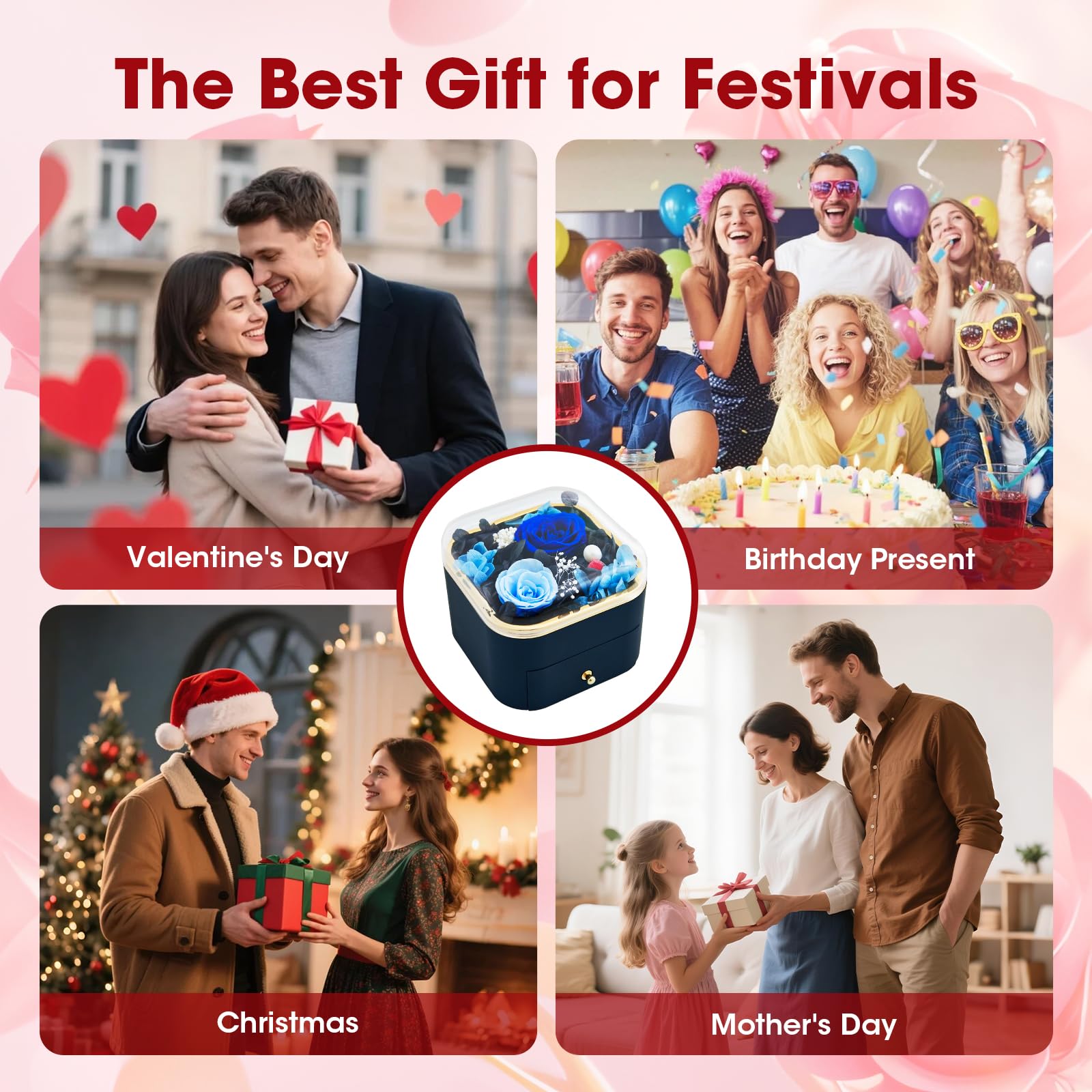 - š¹ćGifts For Women Birthday Uniqueć Mother's Day Gift Flower Gift for Mom,She comes in her own wrapped gift box so you can just give it away without having to spend time on wrapping. The product gift box includes: 2 pickled eternity rose + 1 gift box + 1 Pearl Bracelets+ 1 greeting card. Besides, it is a good choice to use it as a decoration for living room, bedroom, bookshelf and table or dressing table, especially at night, turn on the light, the sense of atmosphere is directly pulled full.