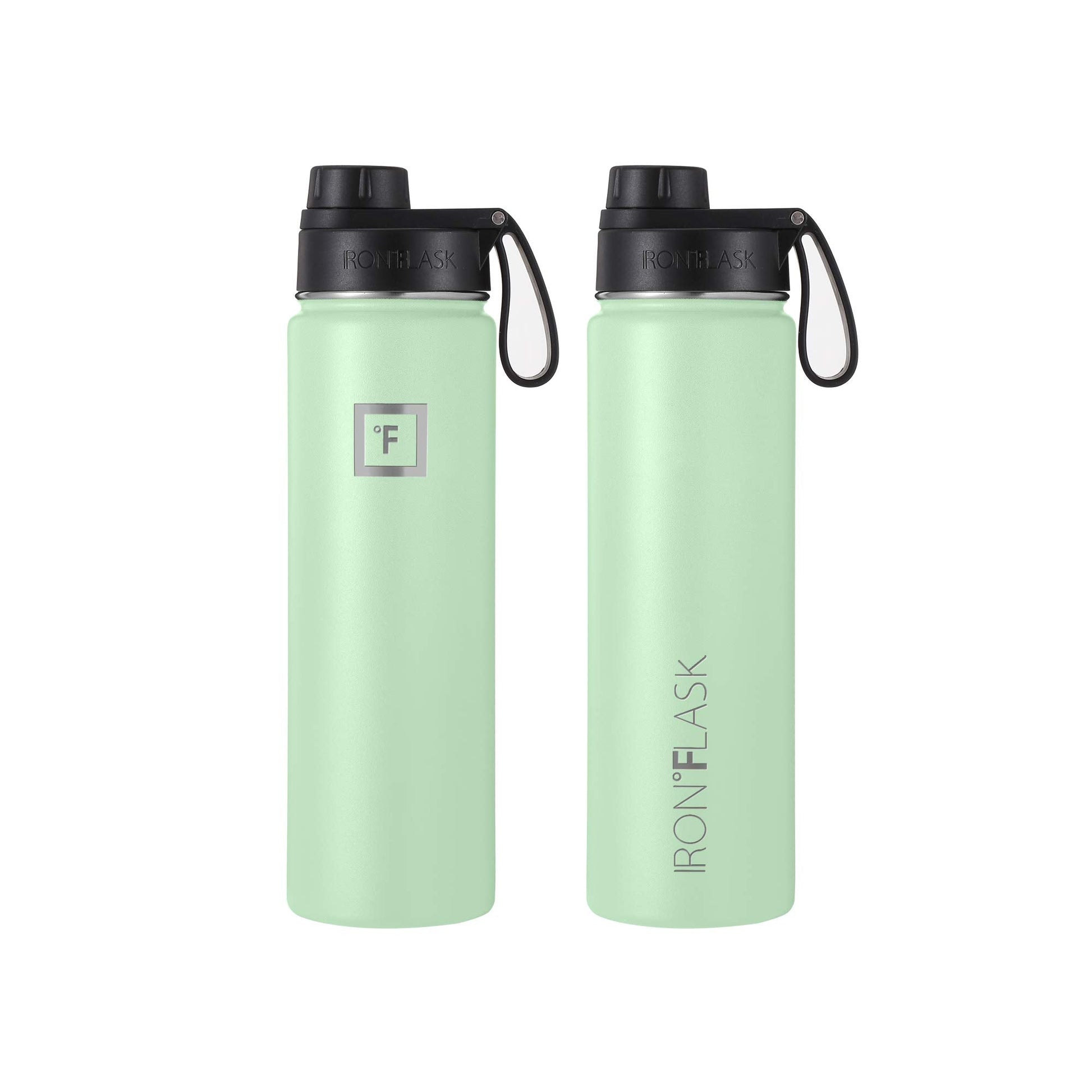 IRON °FLASK Camping & Hiking Hydration Flask, Wide Mouth, 3 Spout Lids, Stainless Steel Outdoor Water Bottle, Double Walled, Insulated Thermos, Metal Canteen - Mint, 22 Oz