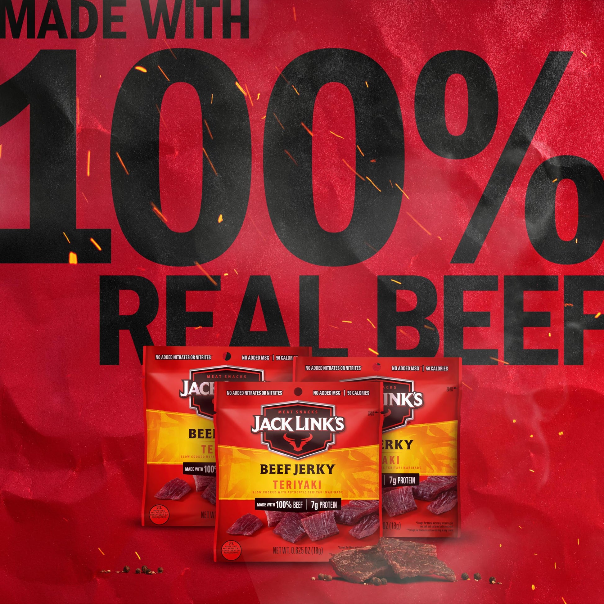 - MADE WITH 100% BEEF: Our Jack Link's Teriyaki Beef Jerky is made of lean cuts of 100% beef. The taste is so great that it makes a great jerky gift for men or women alike! Kids and teens can stay fueled up at school too with great tasting Jack Link's
