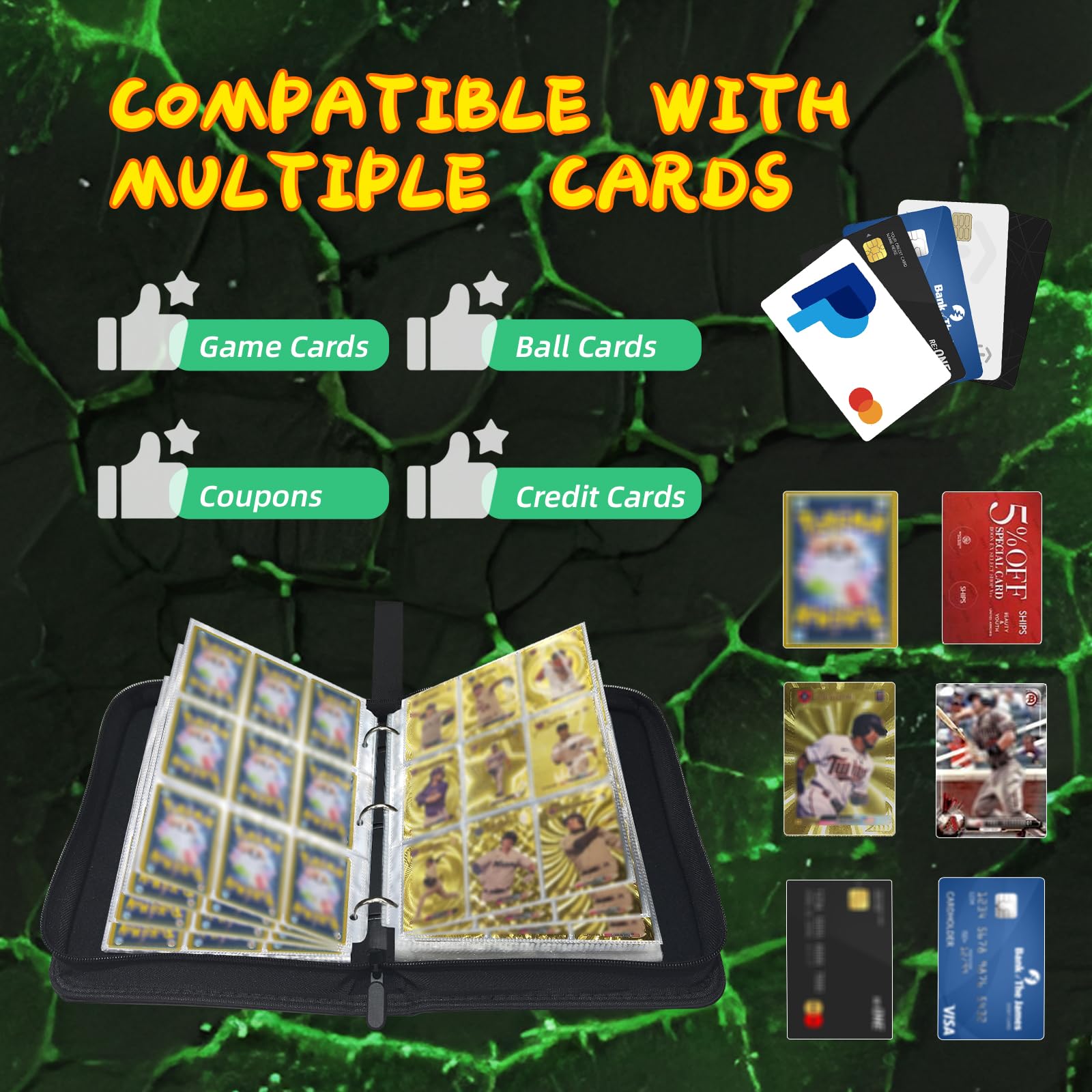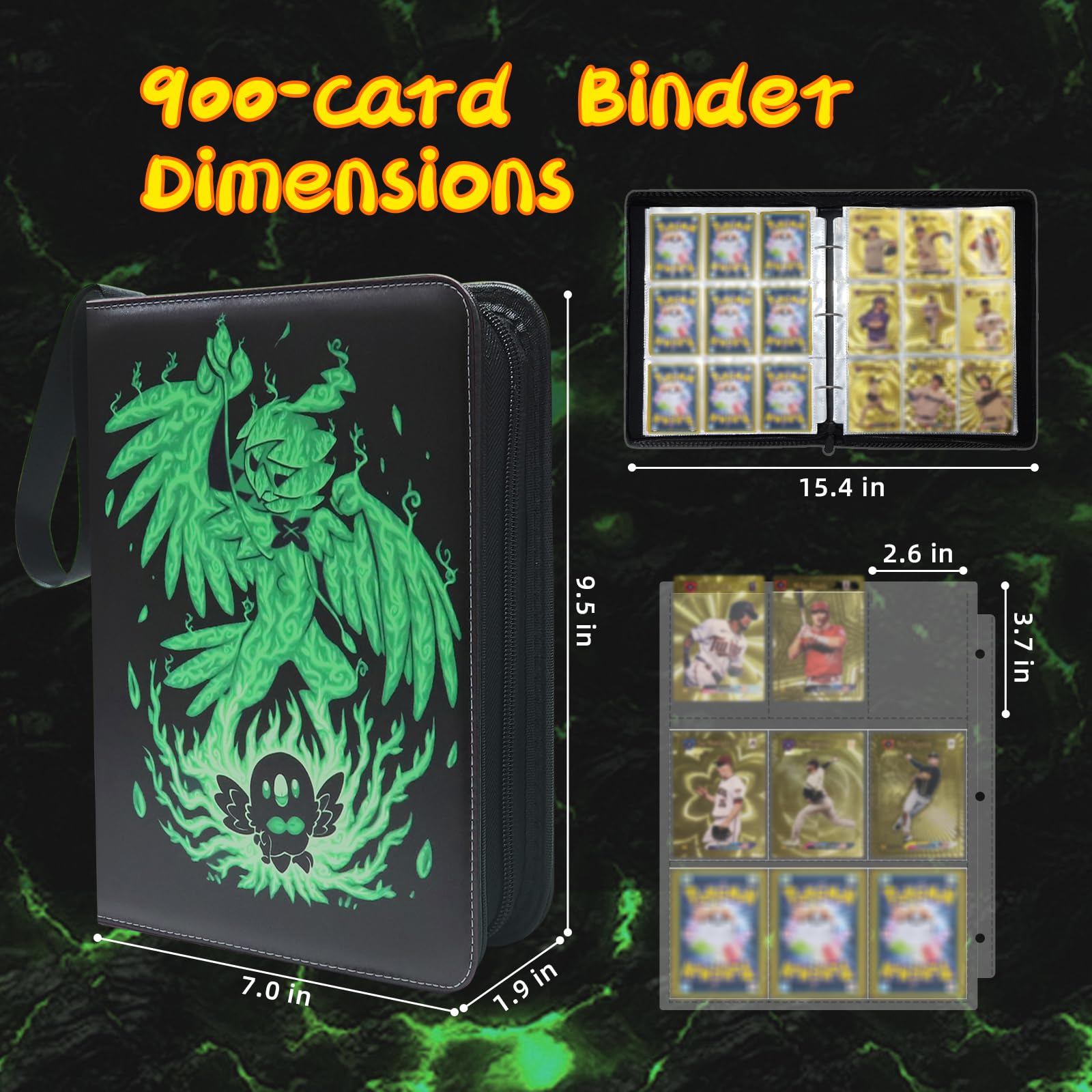 Details: Trading Card Binder 9-Pocket,Premium Zipper Trading Card Holder 900 Pockets and 50-Page Double-Sided Storage with Removable Sleeves,Gift for Girls and Boys