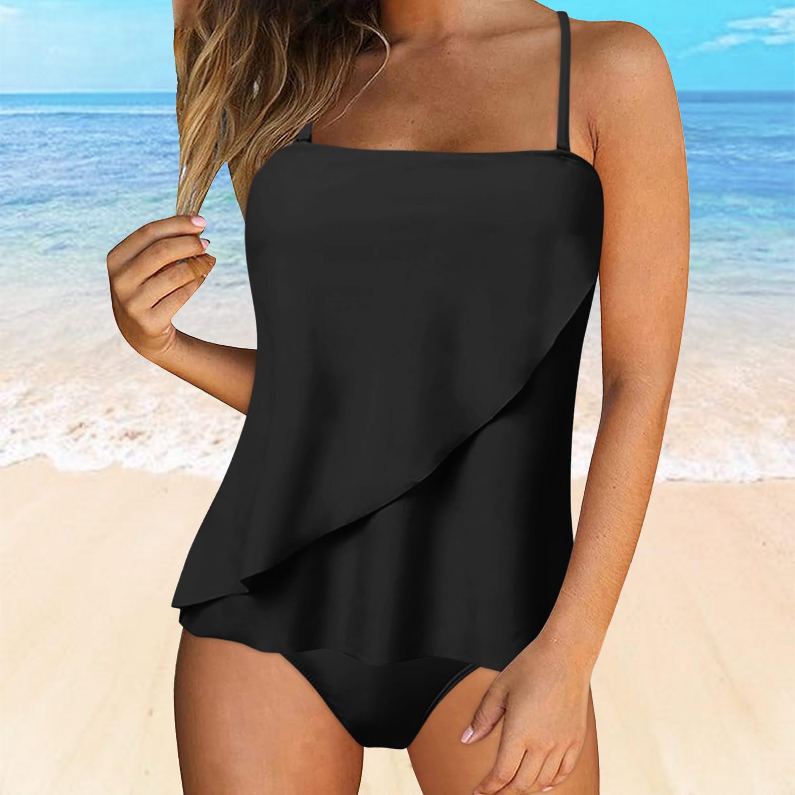 modest bathing suit for women tummy control tankini ruffle high waisted swimsuit cheeky solid lace up bathing suits strappy mid rise v neck cutout bikini set swim tank top with shorts two piece swim suits underwire swimwear