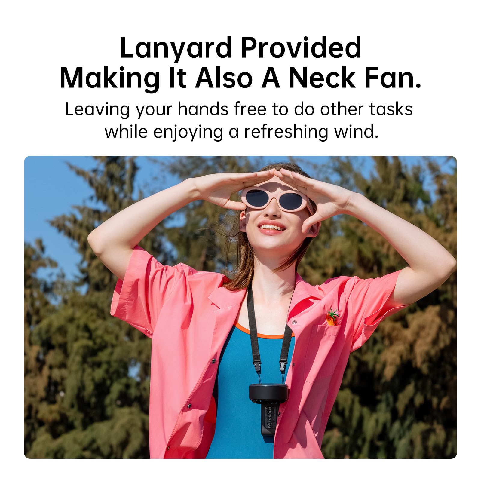 - 3-IN-1 Solution: Hang it around your neck for hands-free cooling or use it on your desk for a focused breeze; Its innovative design allows for handheld use, desktop placement, or worn around the neck, providing a 3-IN-1 solution for beating the heat
