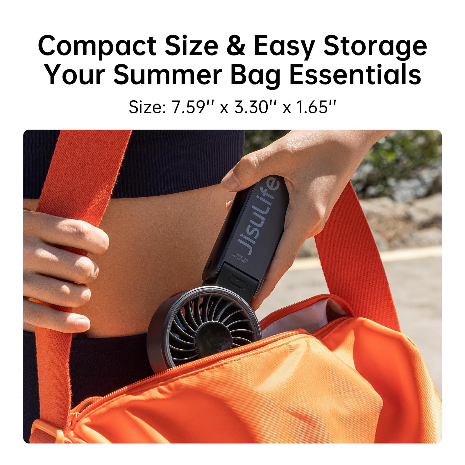 JISULIFE Handheld Fan Life7 – Ultimate Flexibility: High-Power Motor, LED Display, 19.5 Hrs Cooling, 5000mAh Rechargeable, 5-Speed, Foldable Design, 3-IN-1 Portable Fan for Travel Cruise Beach(Black)