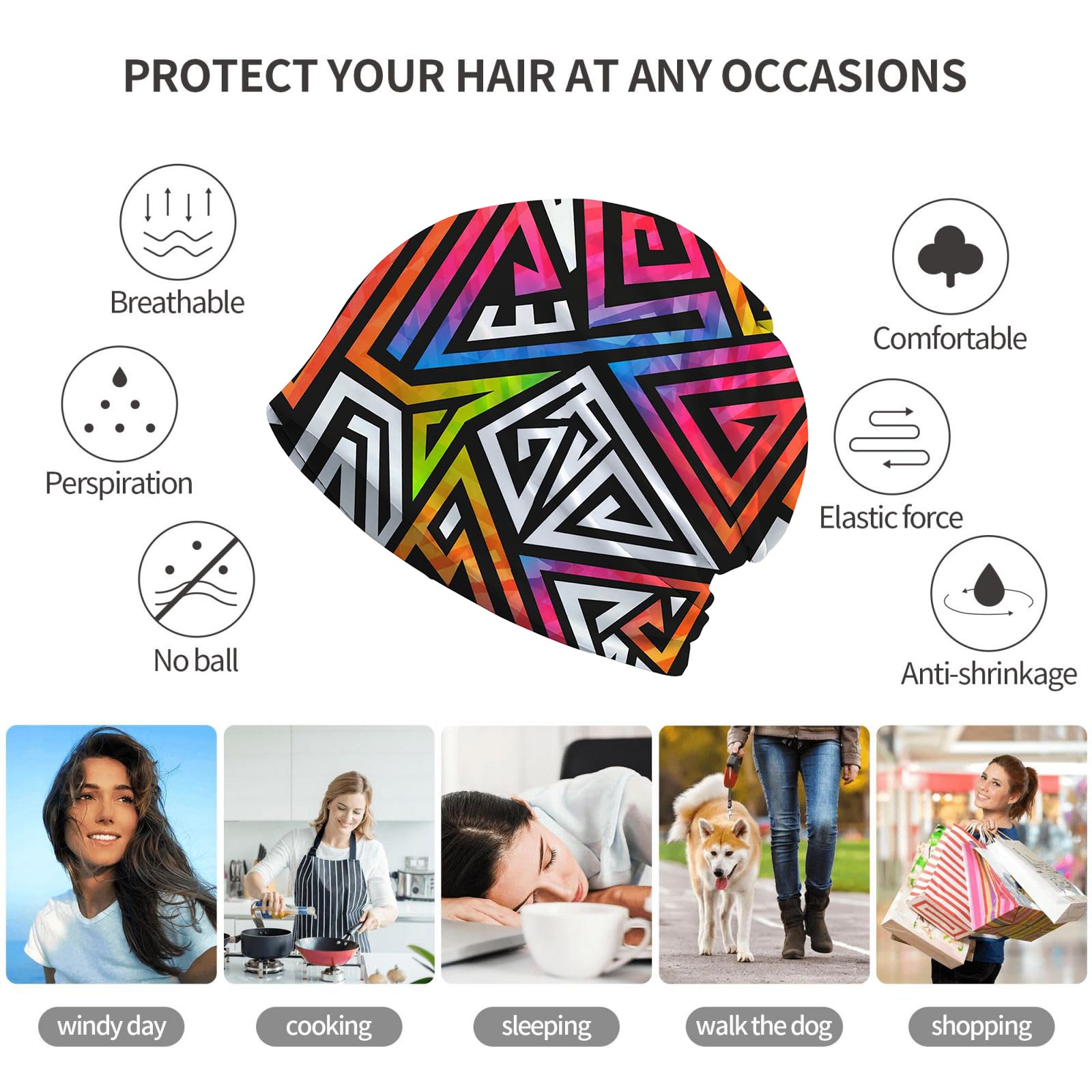 JoUbi Geometric Figure Women's Slouchy Beanie Hat Cute Turban Hats Cancer Headwear Caps Baggy Skull Sleep Scarf