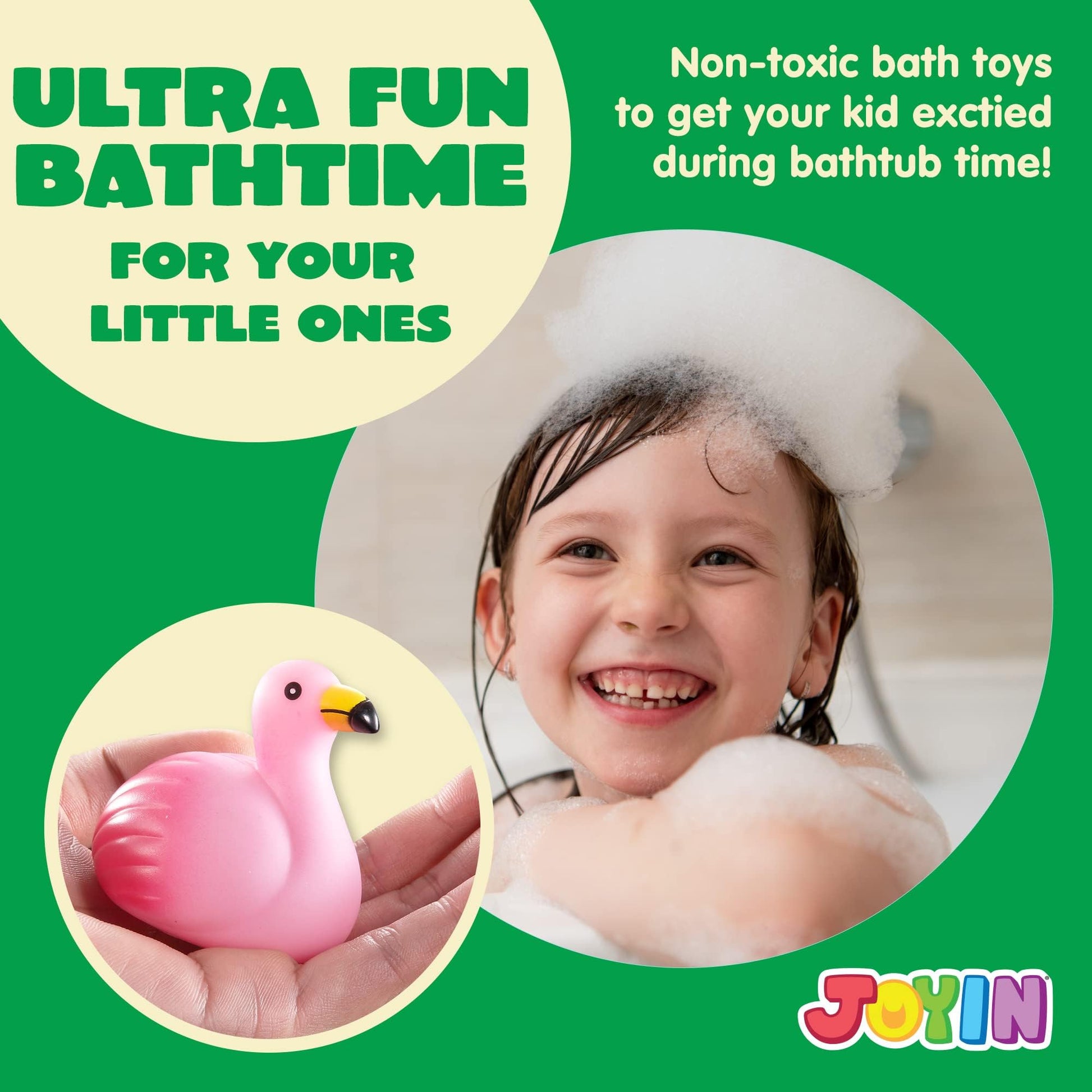 - GREAT VALUE! JOYIN 12 Packs of light-up bath toys includes 12 different types of marine animals bathtub toys for kids. Each animals is around 2.7-inch. These animals bath toys are brightly colored to bring your kids' bath experience a lot of fun!