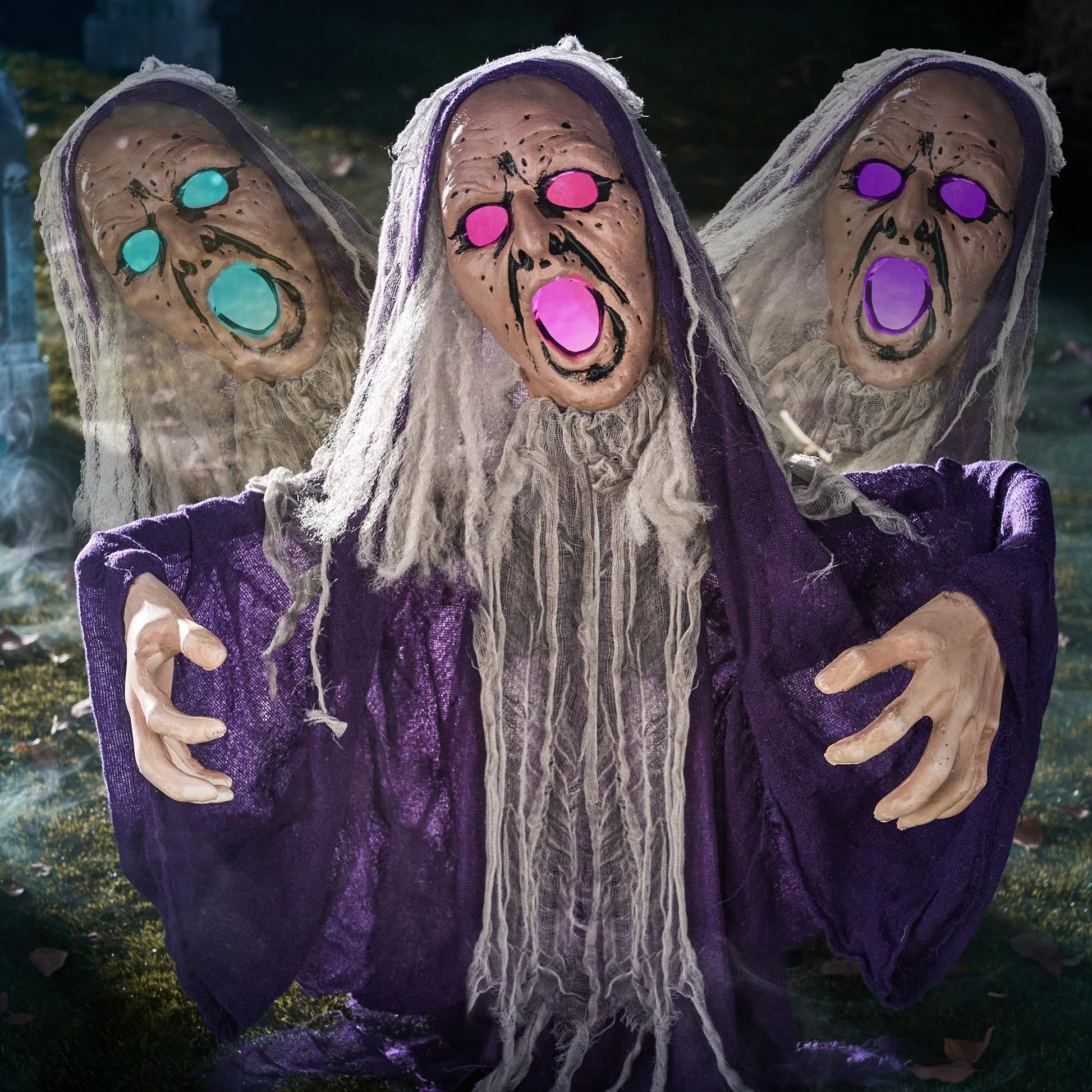 - MORE FUN: Bring surprise and delight to trick-or-treaters with our detailed undead animated groundbreaker with Light Up Face in Purple Clothes, which appears to be breaking through the ground in your yard, making it the perfect addition to your Halloween decorations.