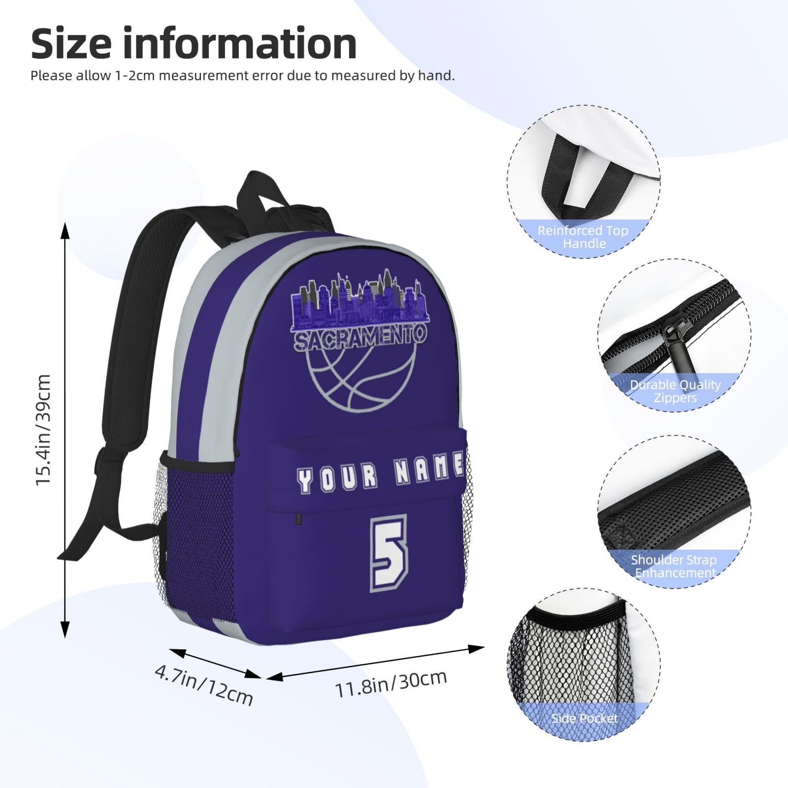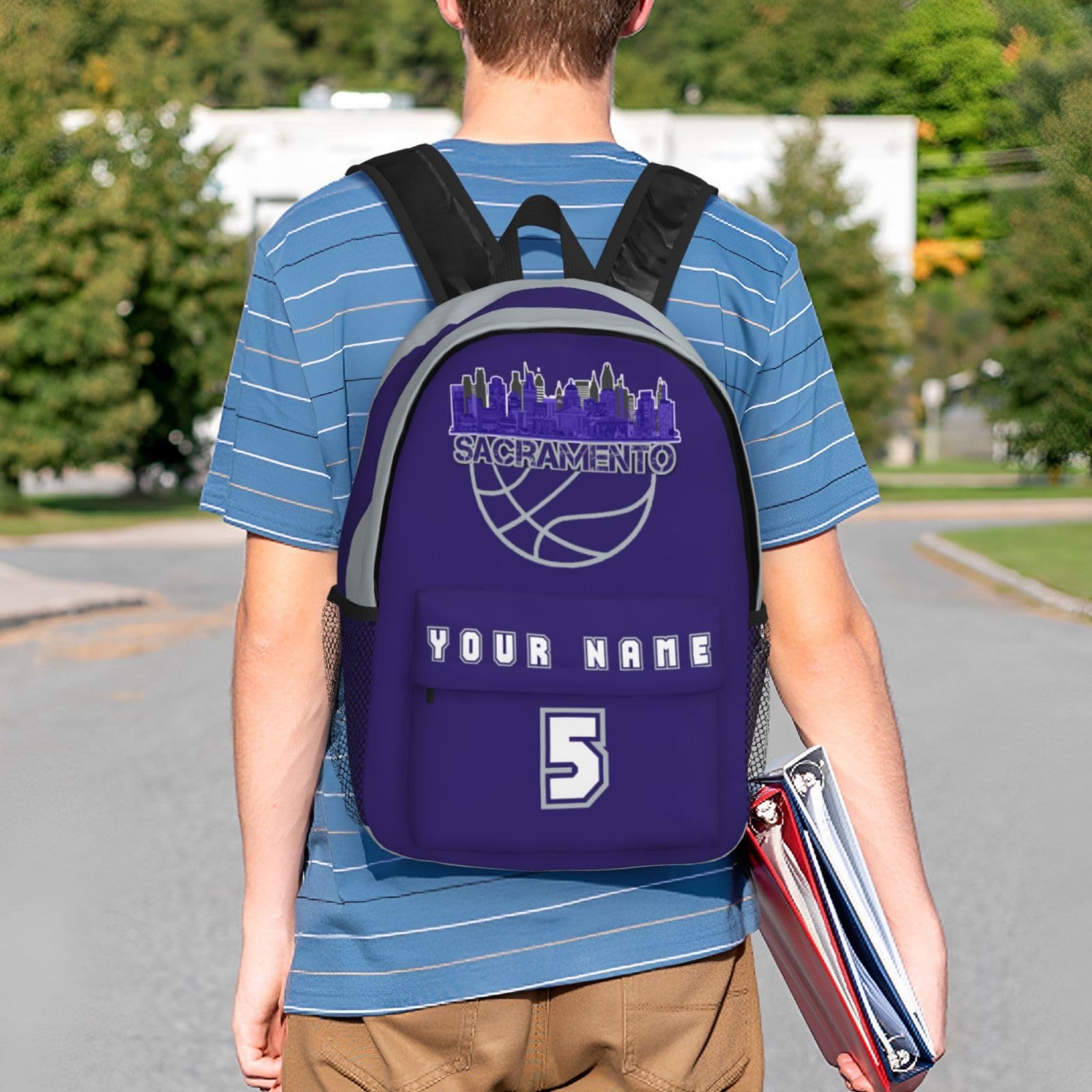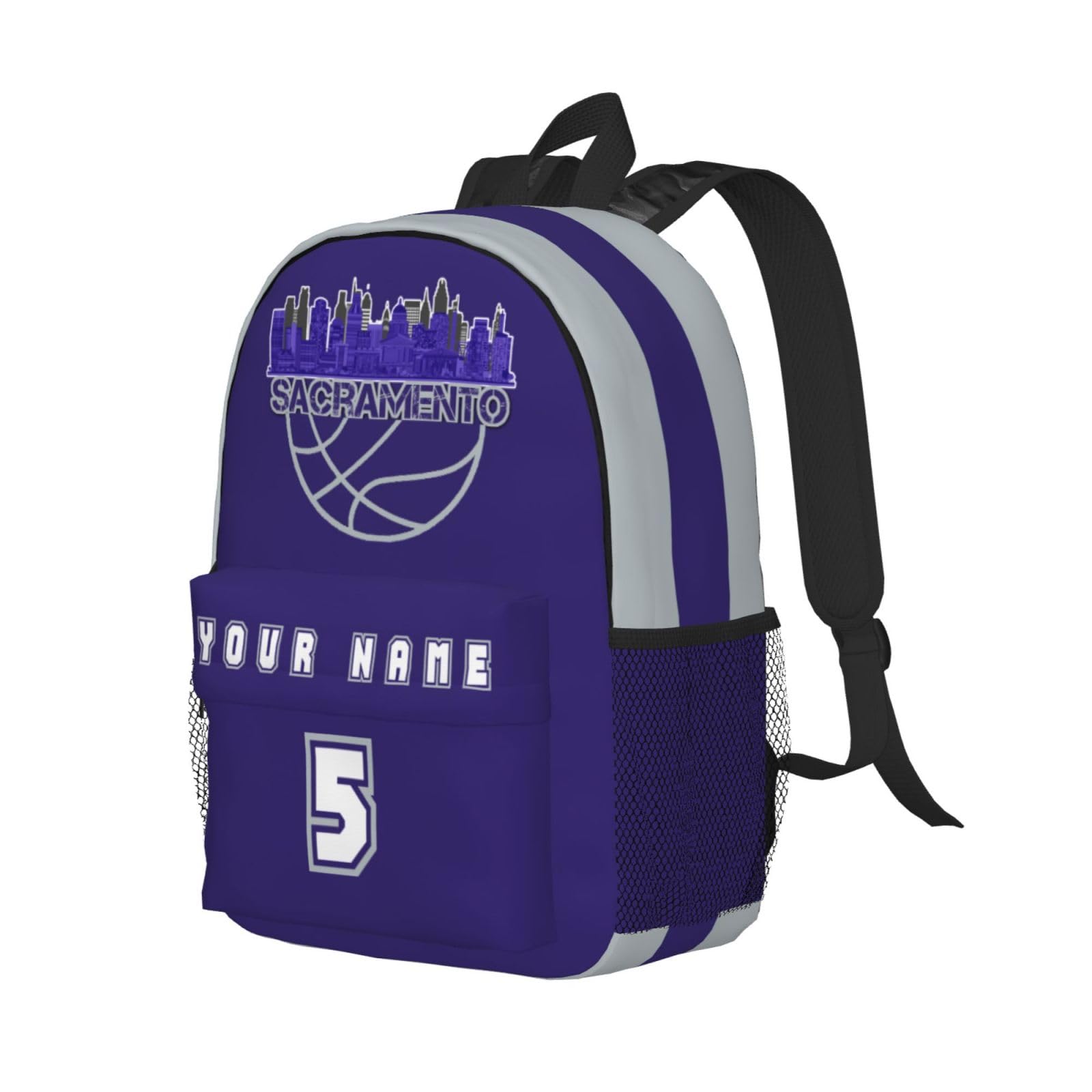 Jvpprds Sacramento Custom Backpack for Boys Personalized Schoolbag Customized Bag with Name Numbers Fans Gifts