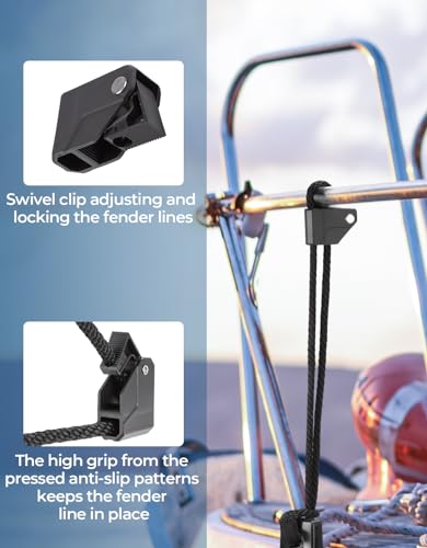• Innovative Gravity Design: Boat fender clips feature a cutting-edge gravity design, allowing mariners to effortlessly adjust the boat bumper's position and height for quick and convenient docking.(Patent pending)